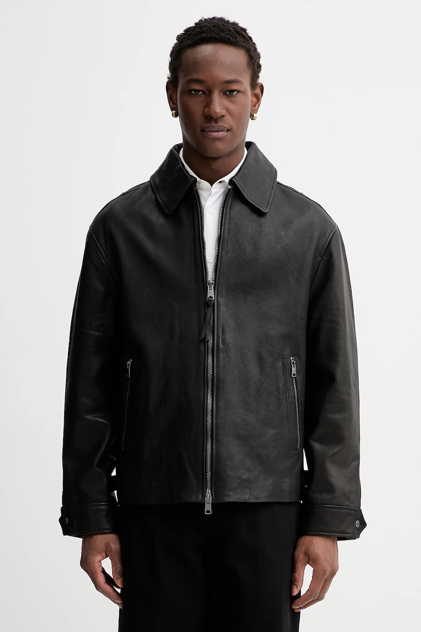 AllSaints geacă de piele NATES culoarea negru, de tranziție, M010LD