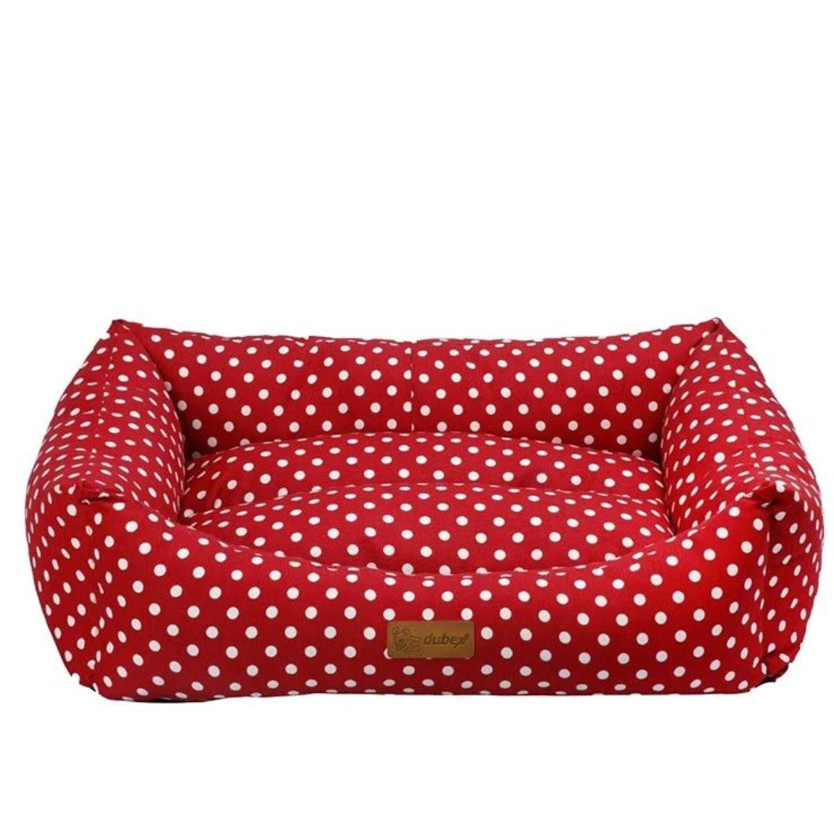 4DOG Deluxe Makarons, pat dreptunghiular câini, bumbac, impermeabil, roșu, XS-S(50x38x19cm)