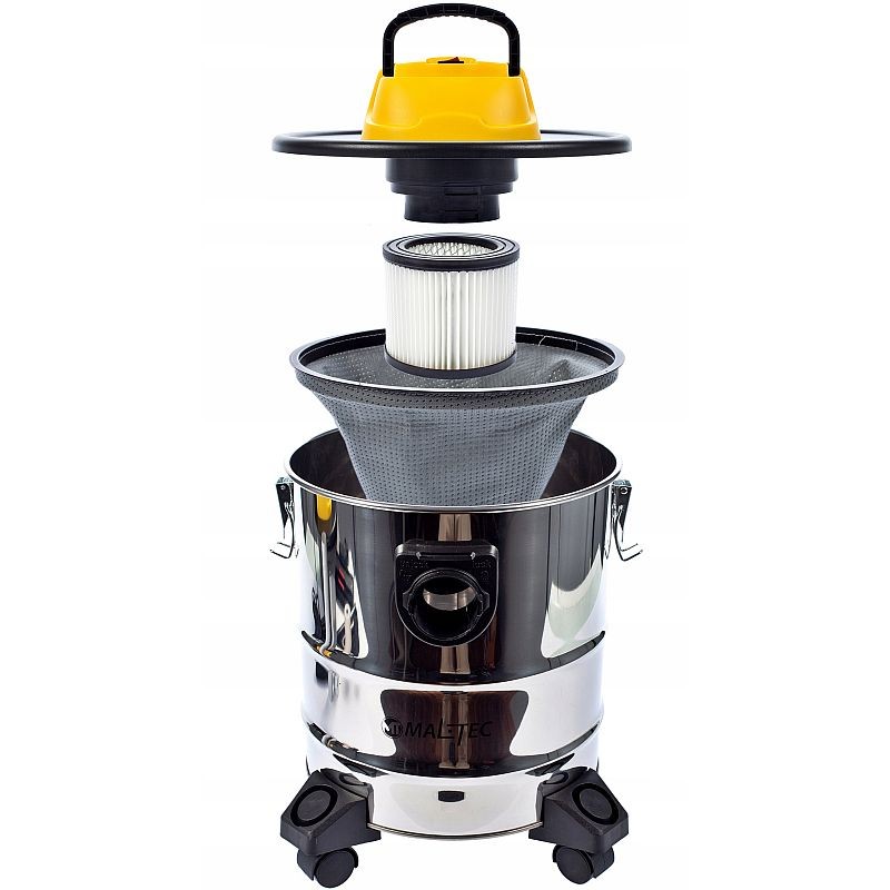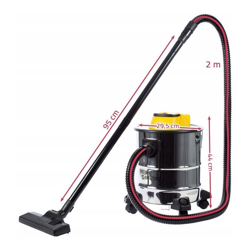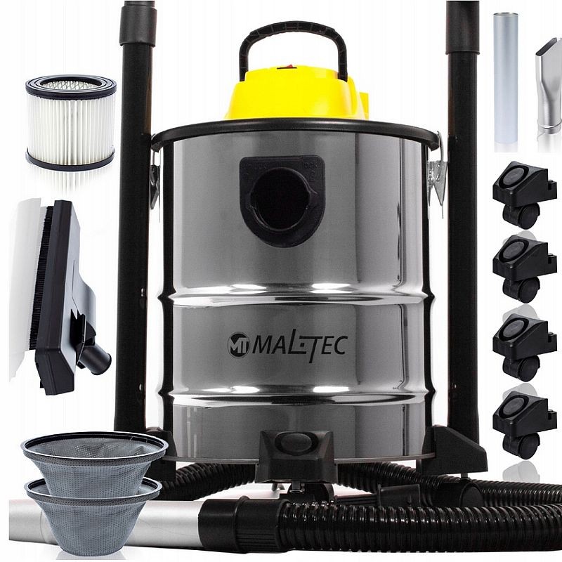 Aspirator cenusa Maltec 2000W, incuietoare rezervor, 20L, 50 Hz, 220V, 44 x 29,5 cm, negru Dispozitivul este folosit pentru a aspira cenusa de la diferite tipuri de sobe, cosuri, gratare si locuri greu accesibile unde se acumuleaza mult praf. Aparatul este echipat cu o teava din aluminiu rezistenta la caldura, un rezervor termorezistent si un furtun flexibil dintr-un material durabil umplut cu o structura metalica, spirala si rezistenta la caldura. Specificatii: -Tensiune nominala: 220V; -Frecventa: 50 Hz; -Putere motor: 2000W; -Inaltime cu roti: 44 cm; -Inaltime fara roti: 37 cm; -Diametru: 29,5 cm; -Diametru furtun de aspiratie: 4 cm; -Lungime furtun de aspiratie: 2 m; -Lungime cablu de alimentare: 4 m; -Lungime tub de vid: 95 cm; -Capacitate rezervor: 20 l; -Greutate: 4,5 kg; -Functia de suflare.