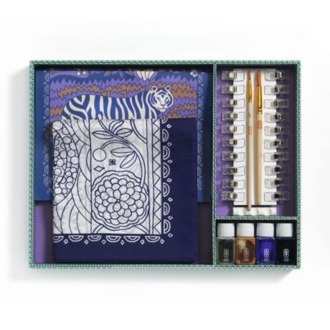 Pictură pe mătase – Creează-ți propria eșarfă unică Atelierele creative Djeco dedicate adulților, le oferă acestora posibilitatea de a experimenta tehnicile și trucurile artiștilor, într-un mod accesibil, cu materiale profesionale , ghidați pas cu pas. Acest atelier te introduce în arta rafinată a picturii pe mătase. Creează o eșarfă lungă din mătase (130 × 34 cm) , cu un design unic, de purtat sau de oferit cadou. Țesătura este pregătită în prealabil cu un contur rezistent („gutta”) care împiedică scurgerea culorilor, astfel încât rezultatul este mereu spectaculos, fără efort. Un tutorial video pas cu pas te va ghida pe tot parcursul activității, pentru ca experiența să fie relaxantă și plăcută – o adevărată clipă de artă și calm, chiar la tine acasă. ???? Conținutul setului: eșarfă din mătase gata de pictat (130 × 34 cm), cu contur aplicat („gutta”), 20 cleme de prindere, 4 flacoane de vopsea pentru mătase (30 ml fiecare), 2 pensule, suport pentru pensule, șablon de lucru, fișă explicativă + card cu cod QR către tutorialul video. Vârsta recomandată: + 15 ani. Materiale: hârtie și carton certificat FSC®, mătase naturală. AVERTISMENT: Contraindicat copiilor sub 3 ani. A se utiliza sub stricta supraveghere a unei persoane adulte. Producător: Djeco, FranțaDimensiuni (lungime x latime): 24.5 cm x . Contraindicat copiilor mai mici de 3 ani. Jucaria/produsul poate contine piese mici care se pot inghiti sau inhala existand pericolul de sufocare sau nu este potrivita copiilor mai mici de 3 ani. Nu lasati ambalajele jucariilor/produselor la indemana copiilor. Indepartati orice ambalaj al jucariei/produsului inainte de a da jucaria/produsul copilului. Va rugam sa supravegheati copilul in timp ce se joaca/foloseste acest produs. Pastrati instructiunile si etichetele pentru referinte viitoare. Pastrati jucaria/produsul departe de foc; feriti jucaria/produsul de temperaturi ridicate si umiditate.