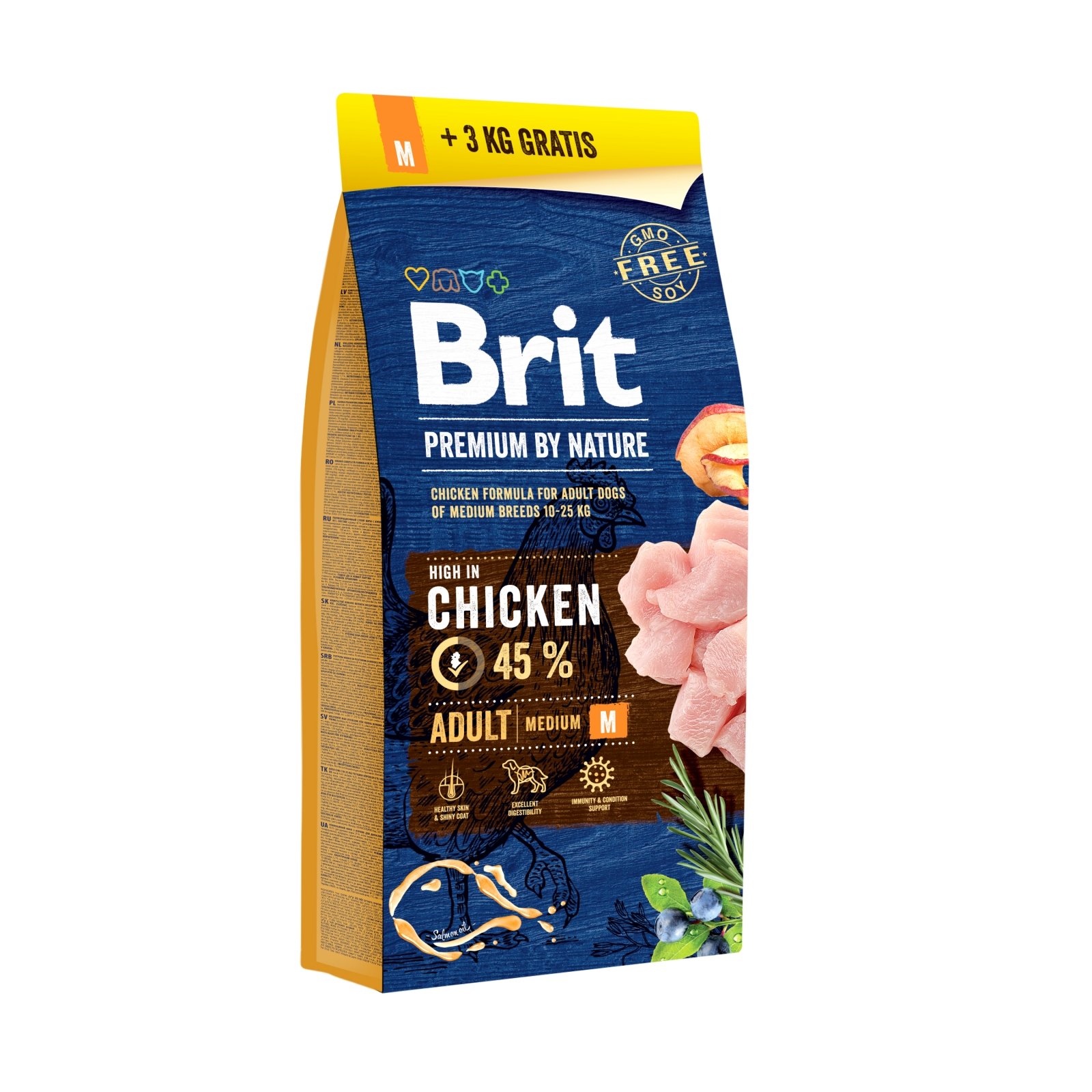 BRIT Premium By Nature Adult Medium Breed, M, Pui, hrană uscată câini, 15kg+3kg GRATUIT