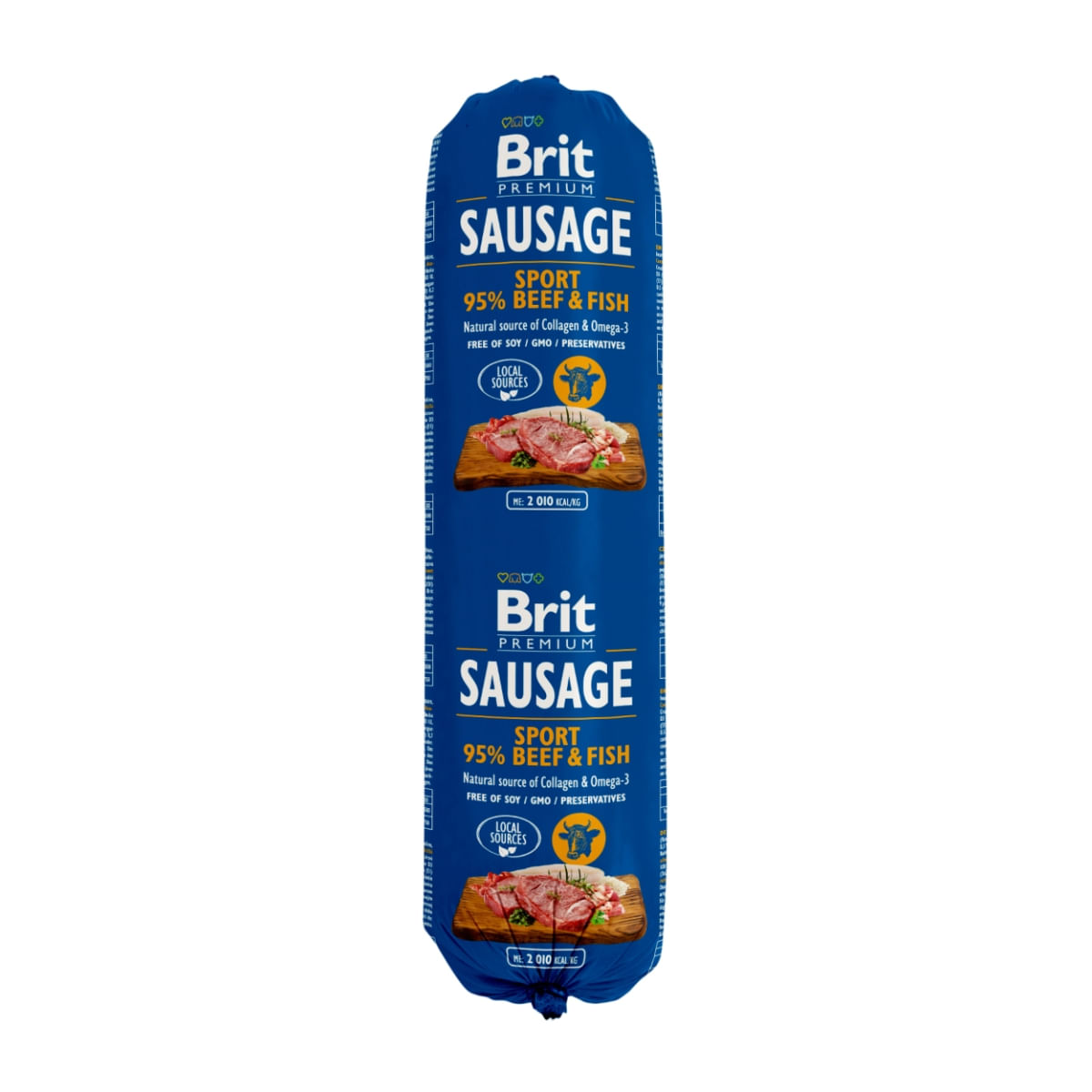 BRIT Premium Sport, Vită și Pește, salam hrană umedă conținut redus cereale câini, activitate intensă, 800g