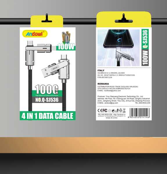 Cablu Engros multifunctional, de incarcare, USB - USB tip C, 1 m, Q-SJ536