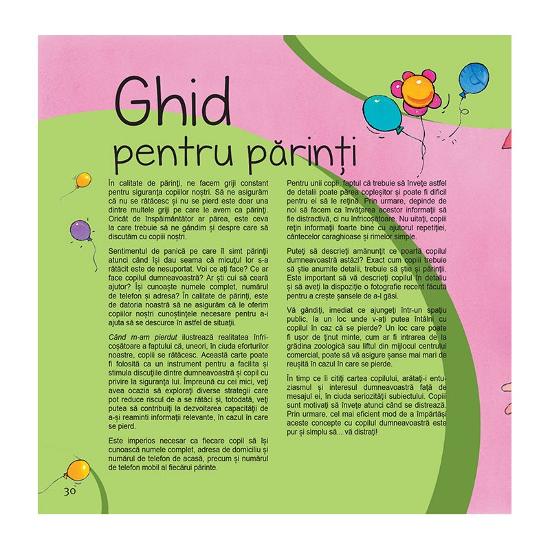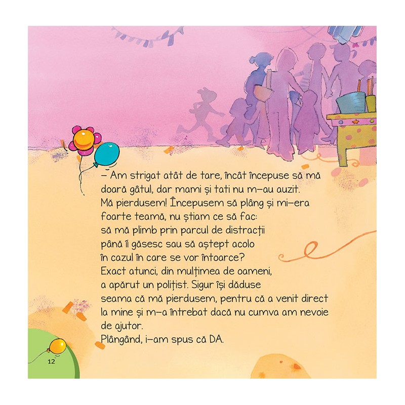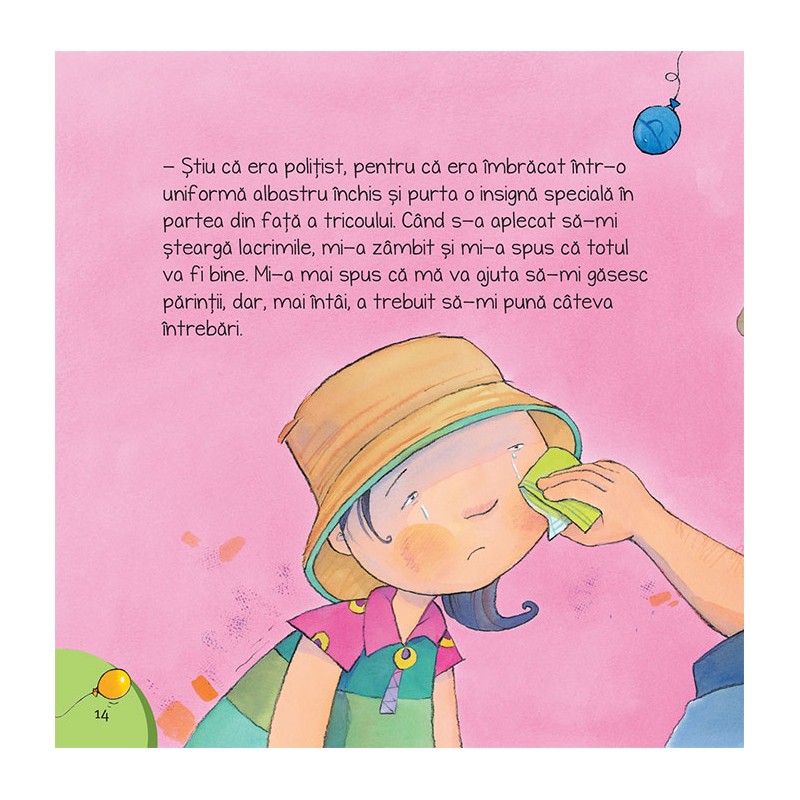 Cand m-am pierdut prezinta povestea unei fetite care se pierde intr-o multime de necunoscuti. Ochii ii lacrimeaza si este foarte speriata. Dar, din fericire, o gaseste un politist care o ajuta sa-si gaseasca parintii.Povestea incurajeaza copiii si parintii sa stabileasca impreuna un loc de intalnire sigur ori de cate ori se afla intr-un spatiu public aglomerat.