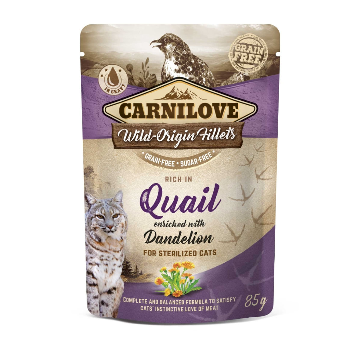 CARNILOVE Sterilised, File Prepeliță cu Păpădie, plic hrană umedă fără cereale pisici sterilizate, (în sos), 85g