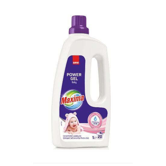 Sano Maxima BABY detergent gel 1L (20 sp). Protectie maxima pentru pielea sensibila a bebelusului si tesaturi maxim de curate! Detergentul curata si indeparteaza petele usor si eficient, protejand in acelasi timp pielea sensibila a bebelusului. Testat hipoalergenic si dermatologic. Un parfum cu o prospetime delicata. Testat si dovedit eficient in indepartarea petelor comune, cum ar fi petele de iarba, piure de fructe si terci de ovaz/legume.