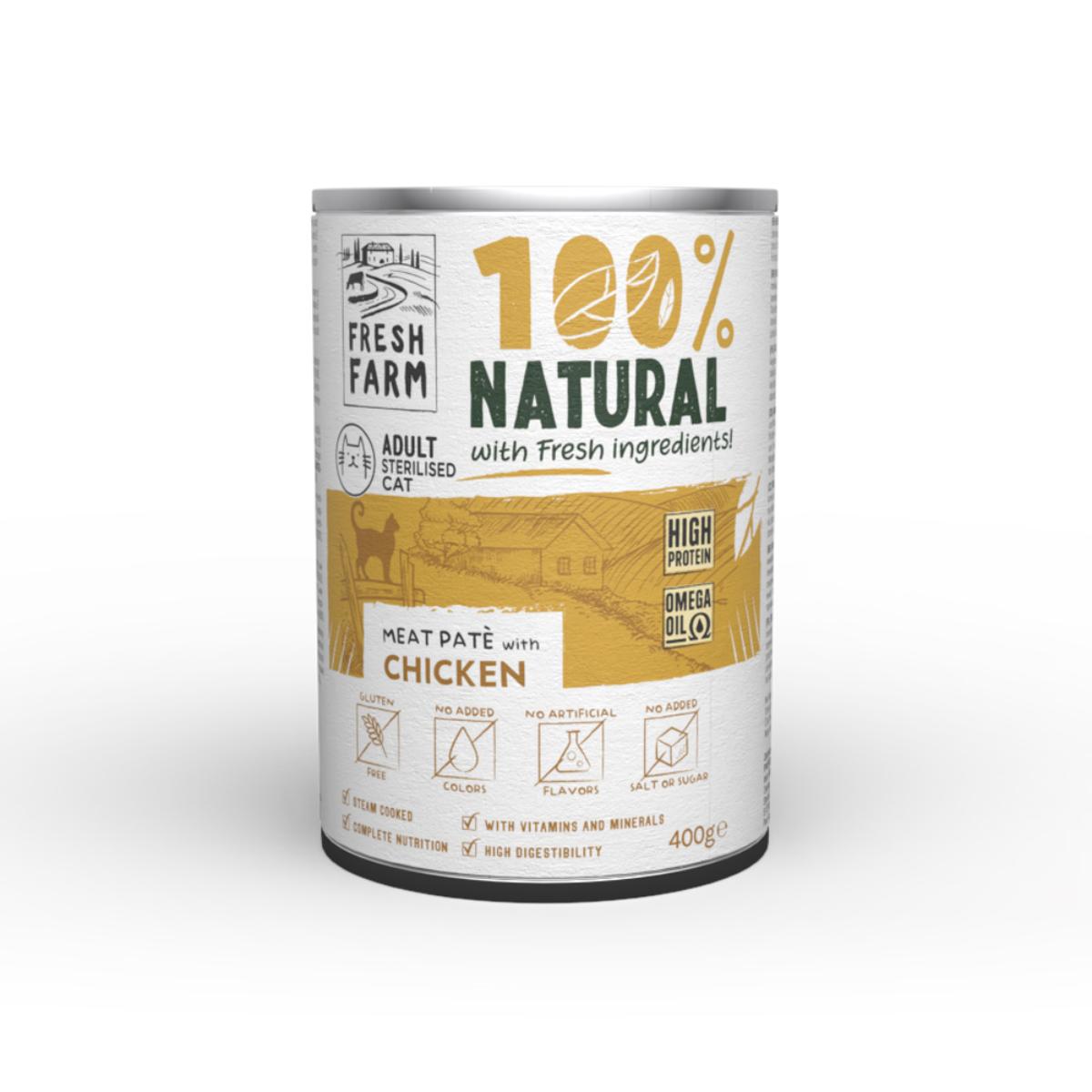 FRESH FARM Smooth Sterilised, Pui, conservă hrană umedă pisici sterilizate, (pate), 400g