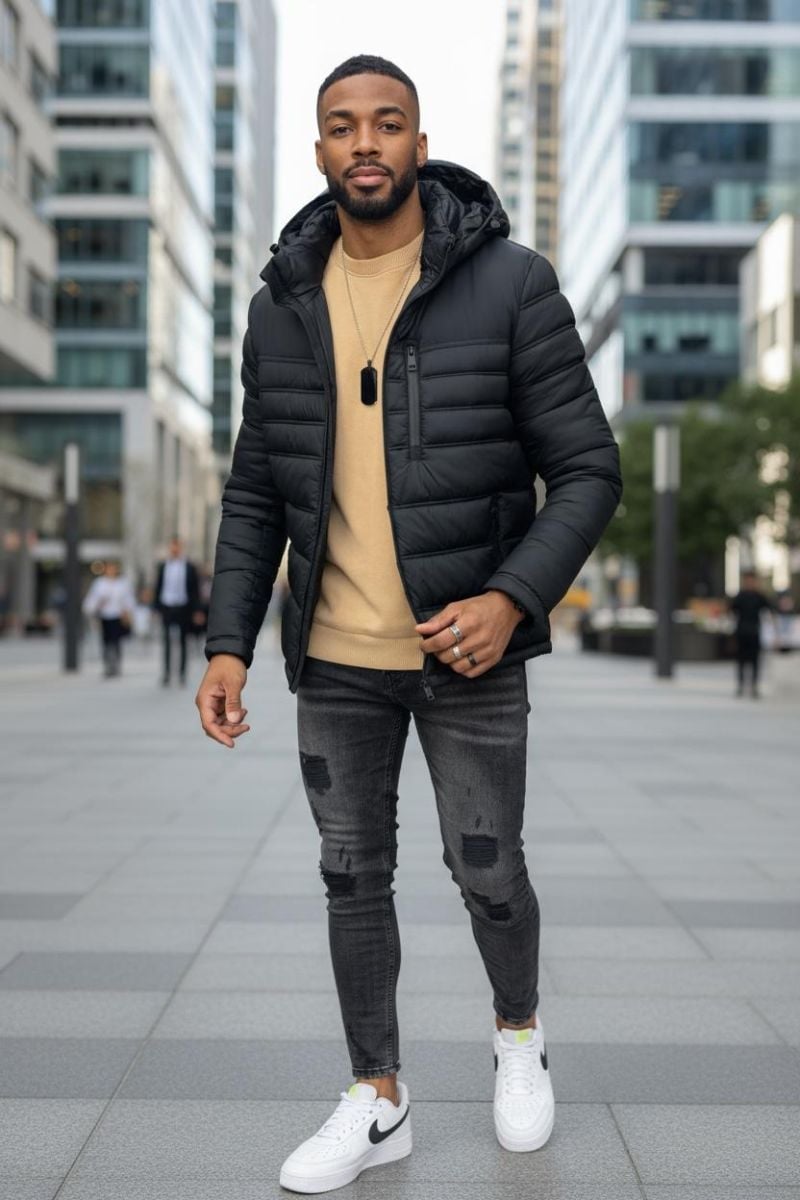 Hanorac cocolino batal, cu buzunare laterale, negru
