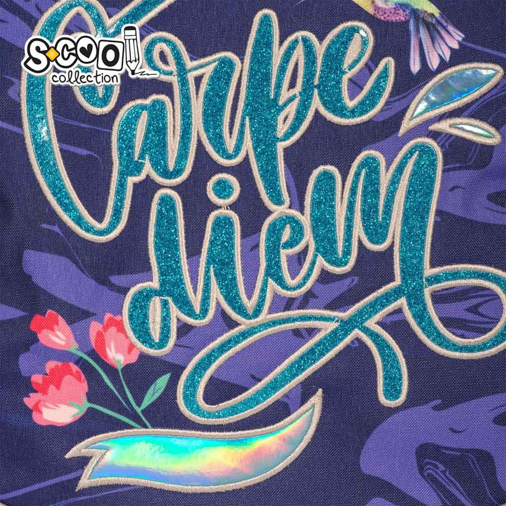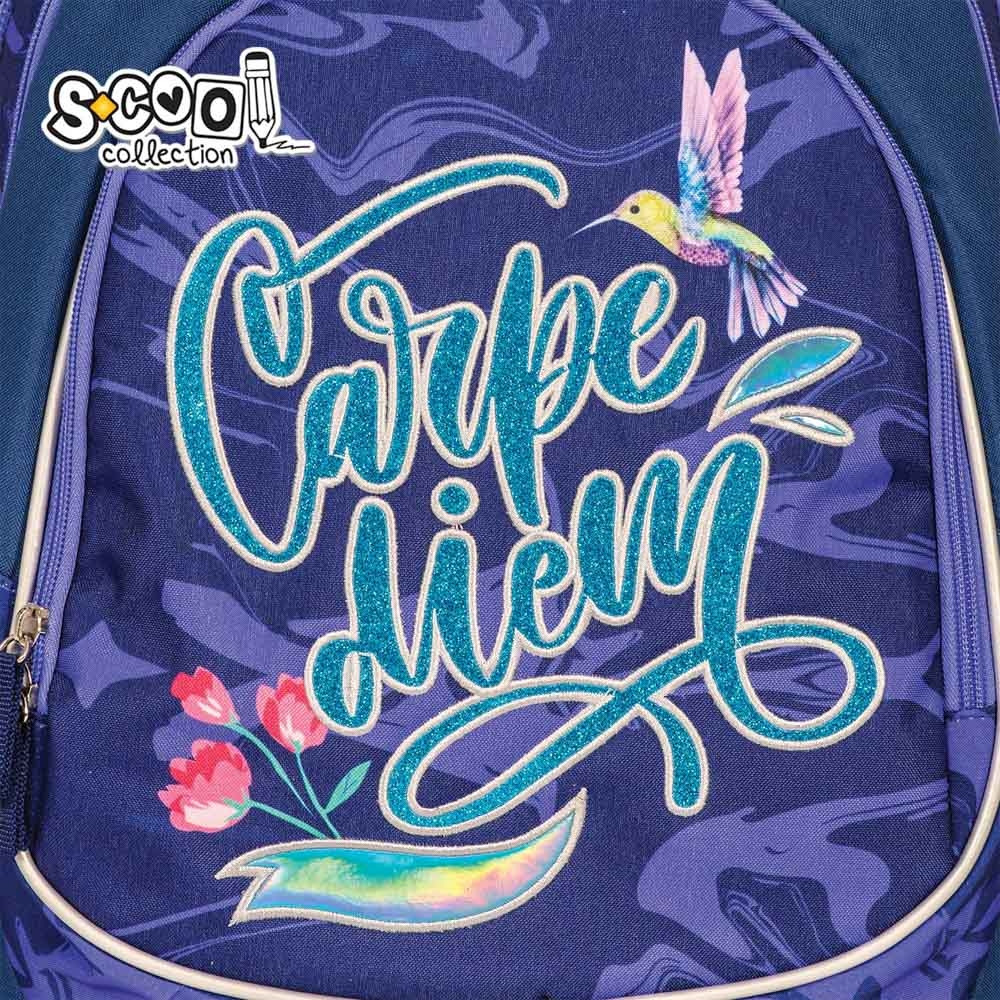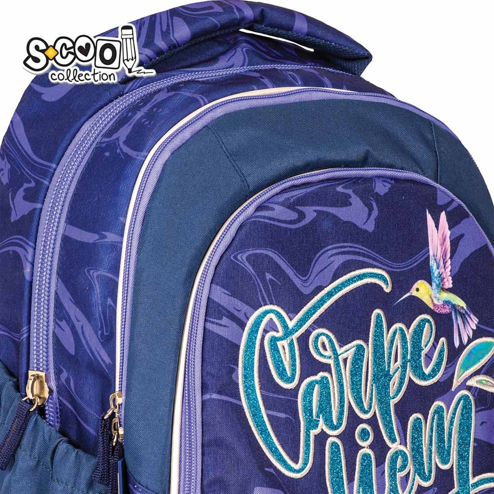 Ghiozdan anatomic LIGHT CARPE DIEM, 19 litri, 2 compartimente principale, inchidere fermoar, mov Acest model de ghiozdan, conceput in mod special pentru clasele primare, este un ghiozdan usor, adaptat la anatomia spatelui, cu un design modern si o compartimentare eficienta, astfel cei mici vor beneficia de tot confortul si sustinerea necesara in aceasta noua etapa din viata lor.. Specificatii: Ghiozdanul dispune de doua compartimente (compartiment principal spatios si compartiment secundar) si un buzunar frontal. Acestea au inchidere cu fermoare cu doua cursoare pentru o manipulare usoara. De unul din cursoarele buzunarului frontal este agat un pompon din plus. Cele doua buzunare laterale, pentru sticla sau umbrela, au banda elastica la nivelul superior. Bretelele intarite, buretate, ajustabile pot fi reglate cu usurinta in functie de inaltimea copilului si greutatea din interiorul ghiozdanului. Acestea au cusaturi triple. Manerul intarit este buretat pentru o transportare usoara. Spatele anatomic, buretat, are la exterior plasa ce permite circularea aerului. Cele cinci benzi reflectorizante sunt dispuse pe buzunarele laterale, pe buzunarul frontal si pe bretele. Fermoarele sunt realizate din plastic, iar cursoarele sunt metalice. Rucsacul este confectionat din poliester 300D cu prelucrare suplimentara: material cu sclipici, material holograma , broderie, margini argintii. Baza ghiozdanului, realizata din PVC, este tare si rezistenta la umiditate. Motiv: LIGHT CARPE DIEM. Culori principale: bleumarin cu mov. Ambalaj: folie. Dimensiune ghiozdan: 28x21x41 cm, Dimensiune compartiment principal: 28x13x41 cm. Dimensiune compartiment secundar: 28x6x40 cm. Dimensiune buzunar frontal: 27.5x30 cm. Lungime bretele: minim 40 cm, maxim 77 cm. Greutate: 0.59 kg Volum: 19 L. Varsta recomandata: 6-11 ani. Avertizare! Se curata de praf cu o carpa curata si uscata. Se curata de murdarie cu o carpa curata umezita in solutie de apa cu detergent 1-2%. Nu se spala in masina de spalat, nu se calca, nu se curata cu abur, nu se curata chimic sau cu solventi organici. Produsul este nou si comercializat in ambalajul original al producatorului. Imaginile de pe acest site au caracter informativ. Nuanta, tonul si intensitatea culorii pot varia in functie de monitor. Ambalajul trebuie indepartat, recuperat si aruncat de catre un adult. Nu lasati ambalajele produselor la indemana copiilor. Produsul poate contine piese mici care se pot inghiti sau inhala de cei mici, existand pericolul de sufocare sau nu este potrivita copiilor mai mici de 3 ani. Pastrati instructiunile si etichetele pentru referinte viitoare. Pastrati produsul departe de foc, si nu il lasati in preajma temperaturilor ridicate si a umiditatii. Datorita masurarii manuale a produsului poate exista o diferenta minora fata de dimensiunea reala a produsului.