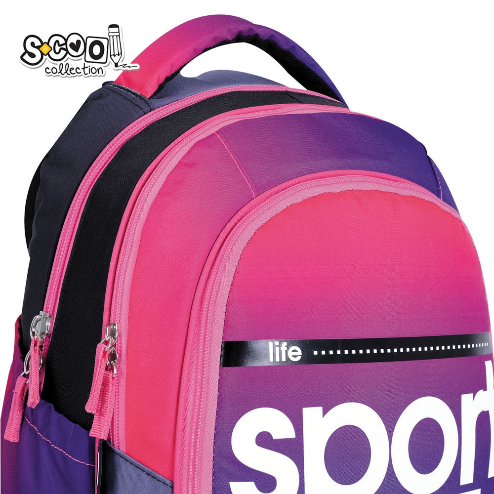 Ghiozdan elevi LIGHT SPORT, compartimentat, depozitare 19.5 litri, 41x28x17 cm Ghiozdanul anatomic LIGHT are doua compartimente, un buzunar frontal si, de asemenea, doua buzunare laterale. Acesta este ideal pentru fete, atat la scoala, cat si in timpul activitatilor sportive, drumetiilor, vacanta, calatorii, cumparaturi, picnic etc. Caracteristici: Ghiozdanul premium este fabricat din poliester 300D, cu prelucrare suplimentara PVC. Compartimentul principal incapator va gazdui tot ce este nevoie pentru scoala, iar compartimentul secundar, cu un volum mai mic, asigura depozitarea separata a altor articole. Buzunarul din fata, protejat de exteriorul buretat, asigura transportul obiectelor sensibile. Pe partile laterale produsul are buzunare din poliester, prevazute cu elastic in partea superioara, practice pentru transportul unei sticle de apa si a umbrelei. Inchiderea celor doua compartimente si a buzunarului frontal se realizeaza cu fermoare puternice din plastic, prevazute cu glisoare metalice ce asigura o manevrare uniforma. Bretelele sunt usor ajustabile in functie de inaltimea copilului si greutatea din interiorul ghiozdanului. Acestea sunt buretate la nivelul umerilor, au exteriorul din poliester si plasa, prelungire din banda textila, reglabila ca lungime si sunt prevazute cu carlige de atasare. Bretelele respirabile si reglabile amelioreaza stresul umarului. Manerul intarit este buretat, asigurand o prindere confortabila si un transport usor. Spatele anatomic, cu perne buretate, protejeaza si amortizeaza in timpul transportului unor obiecte grele. Exteriorul din plasa permite circularea aerului, oferind confort pe tot parcursul zilei. Benzile reflectorizante dispuse pe buzunarul frontal, buzunarele laterale si pe bretele asigura o mai buna vizibilitate in conditii meteo neprilnice, ceata sau intemperii. Ambalaj: folie. - Dimensiuni ghiozdan (Lxlxh): 28x17x41 cm; - Greutate ghiozdan: 0.630 kg; - Volum: 19.5 litri; - Varsta recomandata: +10 ani. Avertizare! Produsul este nou si comercializat in ambalajul original al producatorului. Imaginile de pe acest site au caracter informativ. Nuanta, tonul si intensitatea culorii pot varia in functie de monitor. Ambalajul trebuie indepartat, recuperat si aruncat de catre un adult. Nu lasati ambalajele produselor la indemana copiilor. Verificati periodic integritatea, iar daca au aparut deteriorari nu mai utilizati produsul. Produsul poate contine piese mici care se pot inghiti sau inhala existand pericolul de sufocare este ontraindicat copiilor mai mici de 3 ani. Pastrati instructiunile si etichetele pentru referinte viitoare. Pastrati produsul departe de foc, si nu il lasati in preajma temperaturilor ridicate si a umiditatii. Datorita masurarii manuale a produsului poate exista o diferenta minora fata de dimensiunea reala a produsului.