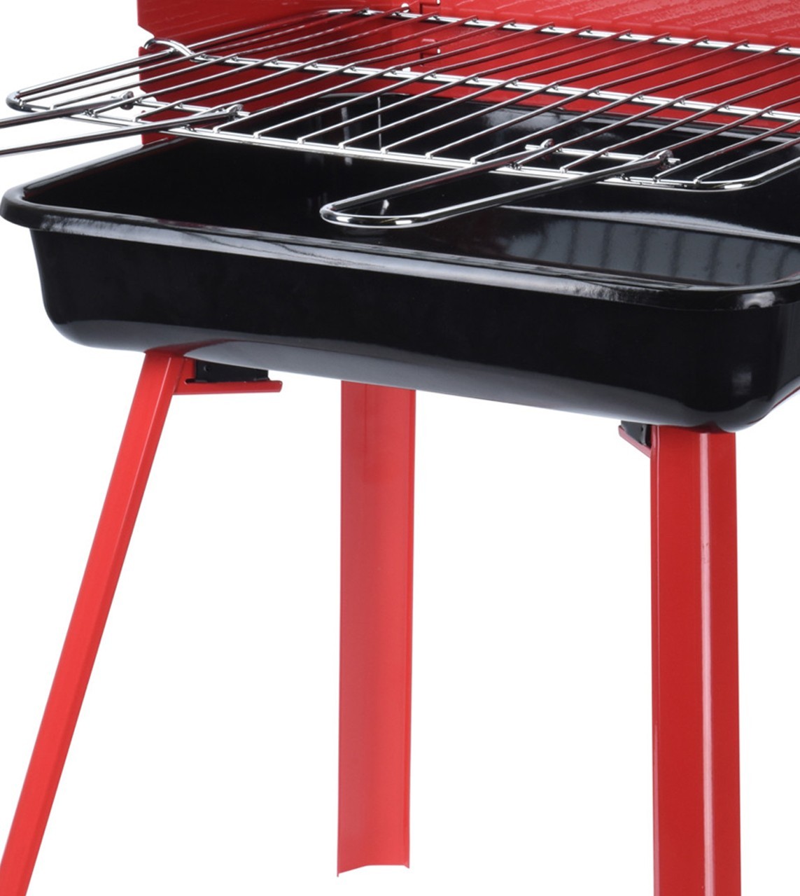 Gratar pe carbuni, inaltime reglabila, compact, metalic, rosu 360x310x450 mm Excelent pentru gradina sau balcon Acest gratar este o alegere excelenta pentru a fi folosit atat in curte si gradina cat si la picnic sau chiar si pe balcon. Dispune de o constructie compacta ocupand putin spatiu si este usor de mutat dintr-un loc in altul. Se poate transporta in masina, bucurandu-va astfel de utilitatea lui si in calatorii. Reuniunile de familie si serile relaxante cu prietenii vor fi un real succes cu acest gratar, delectandu-va cu preparate delicioase si bine gatite. Materiale de calitate - rezultate deosebite Gratarul este realizat din metal si are o intaltime de 45 cm, astfel ca poate fi asezat pe masa, pe podea sau pe iarba. Inaltimea acestuia poate fi reglata in 3 moduri diferite, in functie de nevoile dvs. Suprafata grill-ului este de aproximativ 33 x 26 cm si este foarte rezistent astfel incat sa sustina bucati mai groase de carne. Functioneaza cu carbuni, iar materialele de calitate garanteaza rezultate deosebite si preparate extrem de gustoase. Specificatii: - gratar pe carbune; - inaltime 45 cm; - inaltime reglabila in 3 moduri; - suprafata grill aprox. 33 x 26 cm; - greutate aprox. 2 kg; - material metal; - dimensiuni 360x310x450 mm; - culoare rosu.