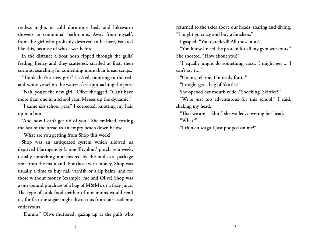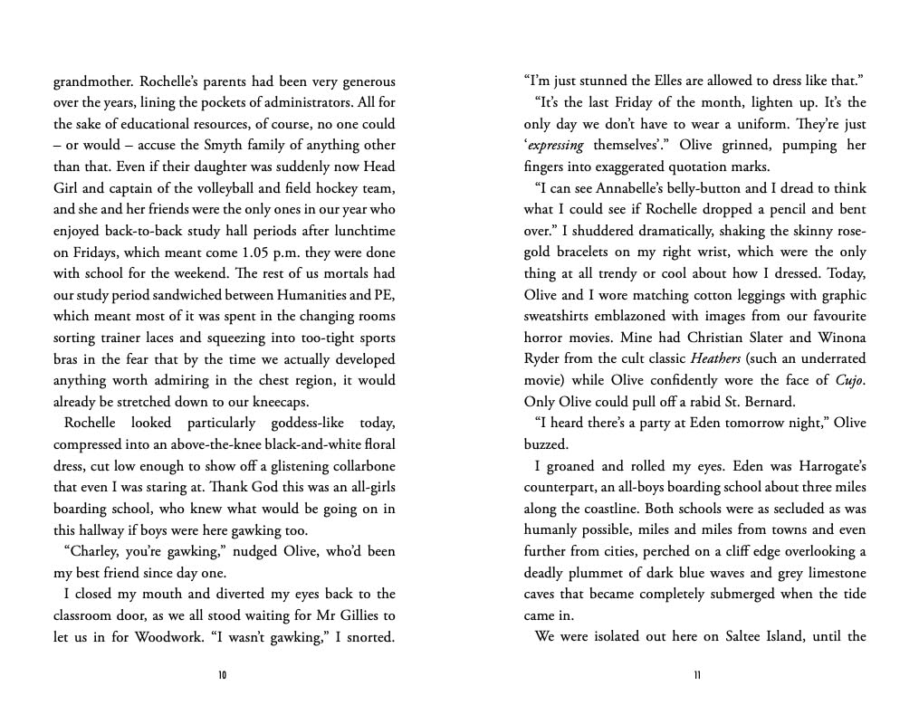Horror movie enthusiast Charley is determined to keep a low profile when she’s enrolled at a girls’ boarding school on a remote island. That is, until someone starts killing off her senior class! From elaborate scare tactics to severed heads in fridges, Charley has found herself at the centre of a teen horror movie. And thats not the only alarming thing that’s happening – she’s now seeing the ghosts of her former classmates! Haunted by her peers, and with everyone beginning to suspect her, Charley decides to do something about it. She and her only best friend Olive are going to solve the murders and find out who’s killing off the class before graduation. Charley just needs those pesky ghosts to shut up and give her a hand…A fast-paced tongue-in-cheek YA novel about two friends trying to survive senior year – literally! Perfect for fans of Fear Street, The Midnight Club and the SCREAM franchise.