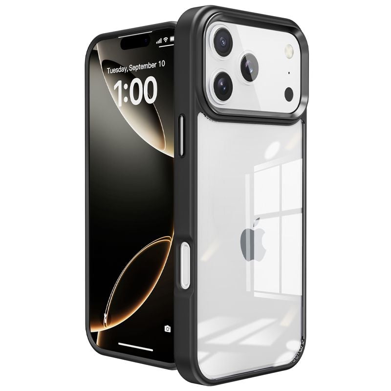Husa Spate sticla pentru iPhone 17 Pro Max, Protectie antisoc, Margini colorate, Negru Engros