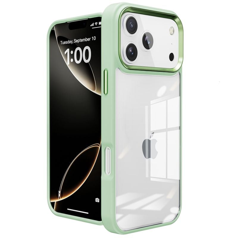Husa Spate sticla pentru iPhone 17 Pro Max, Protectie antisoc, Margini colorate, Verde deschis Engros