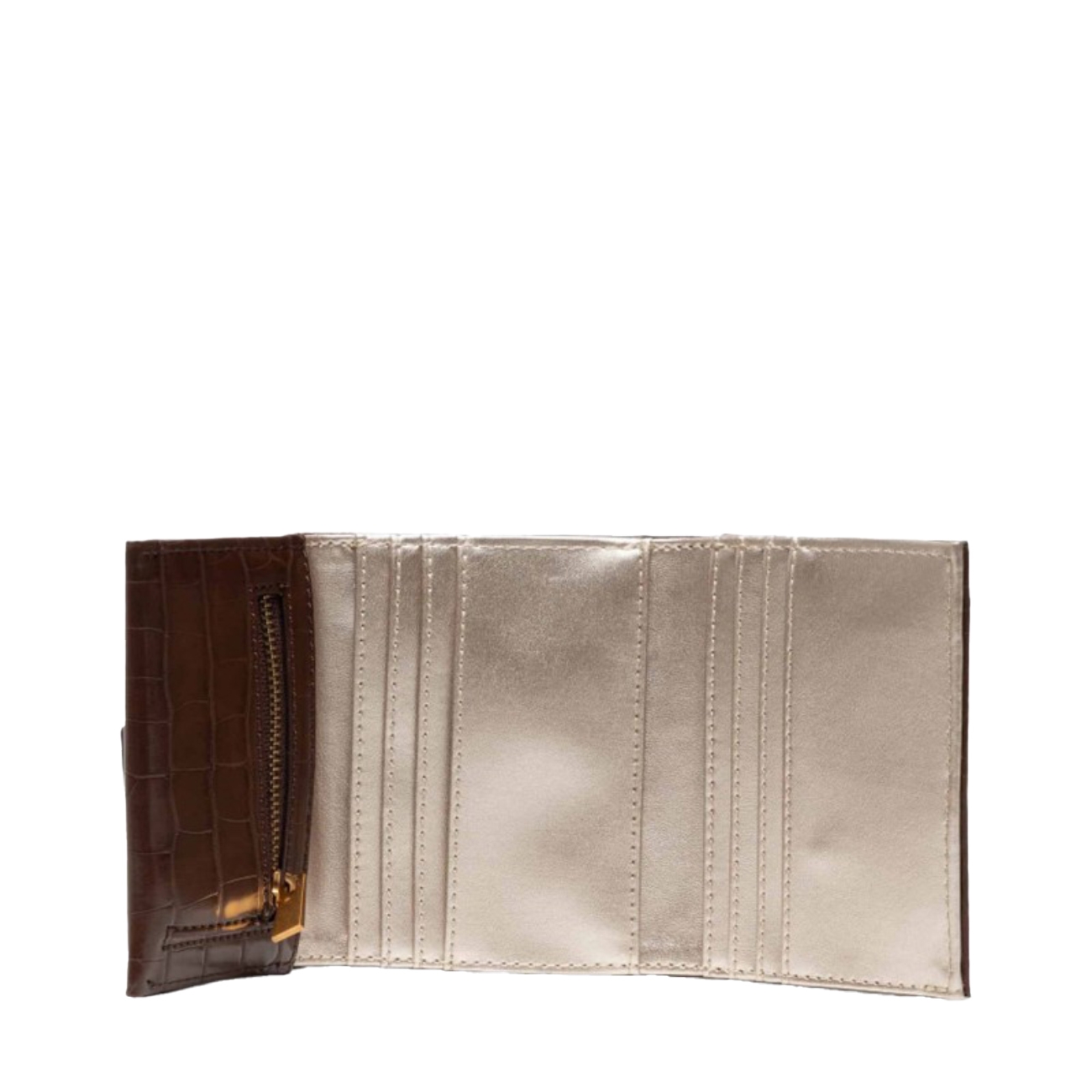 Portofelul Guess se remarcă prin textura embosată cu efect de piele exotică, care adaugă un aer sofisticat și modern. Designul compact și practic oferă compartimente bine organizate pentru carduri și bancnote, fiind ideal pentru utilizarea zilnică. Logo-ul auriu Guess EST 1981 aduce un detaliu elegant și distinctiv.
