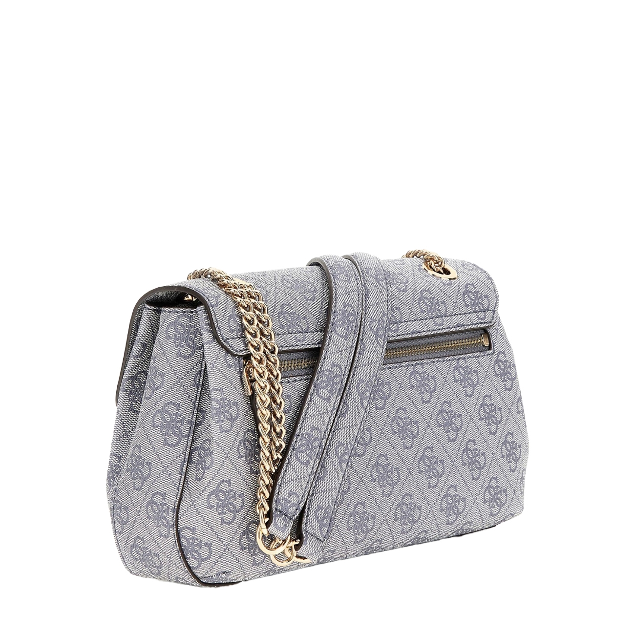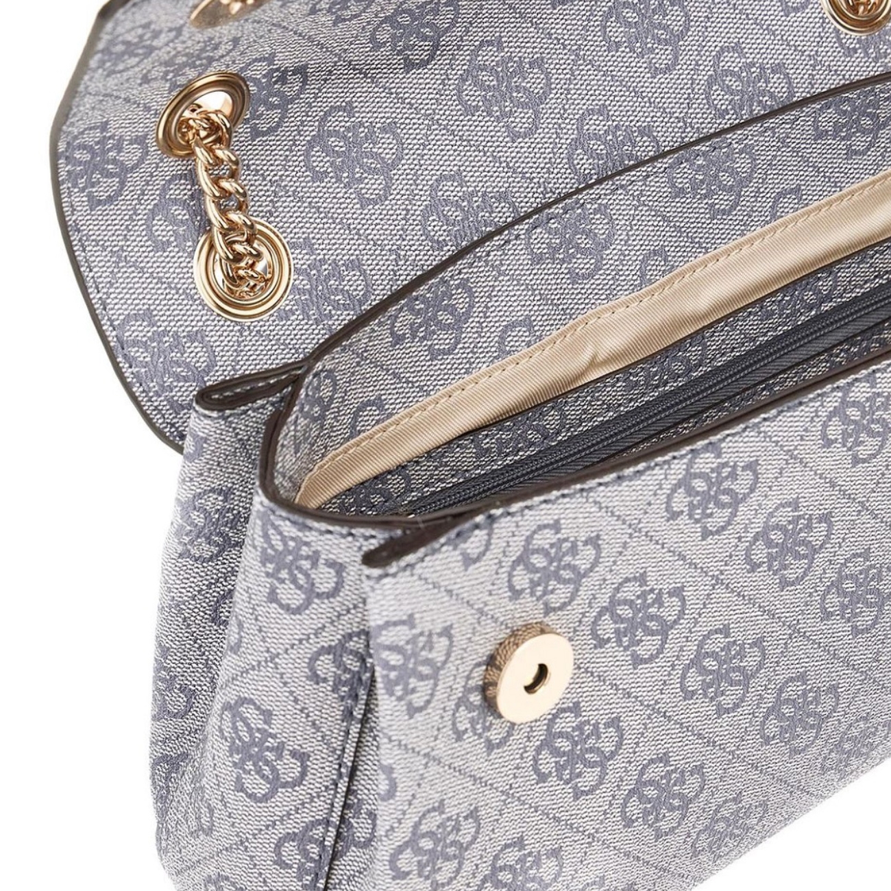 Geantă de umăr Guess, confecționată din poliuretan rezistent, cu imprimeu logo subtil și lanț metalic elegant pentru un plus de stil. Închidere practică și compartimentare bine gândită, perfectă pentru a completa ținutele urbane sau elegante.