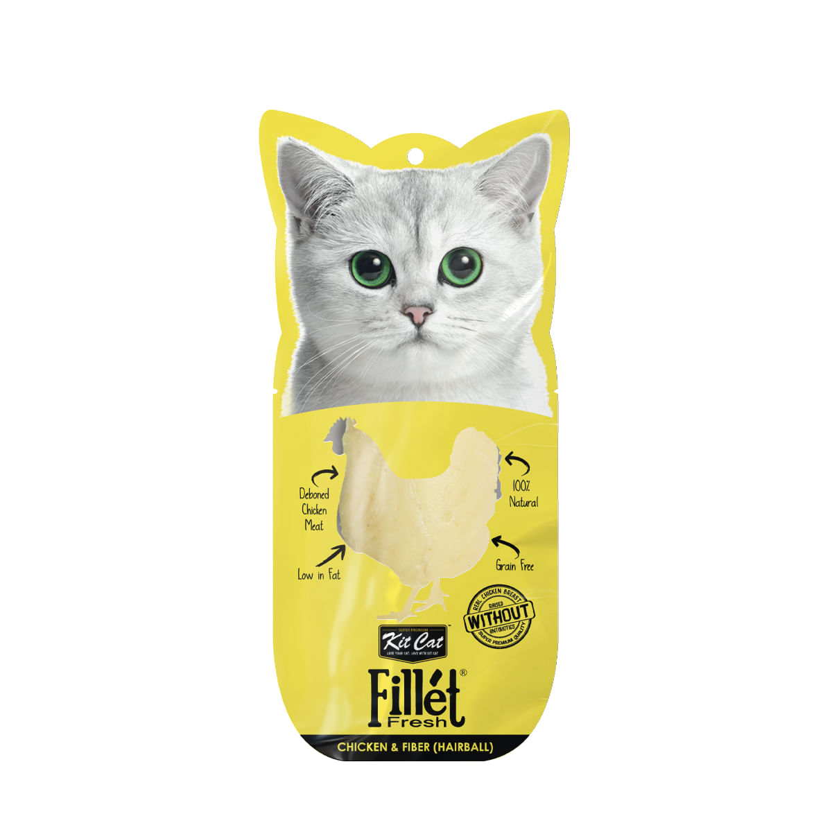 KIT CAT Fillet Fresh Hairball, Pui, plic recompense fără cereale pisici, limitarea ghemurilor de blană, 30g