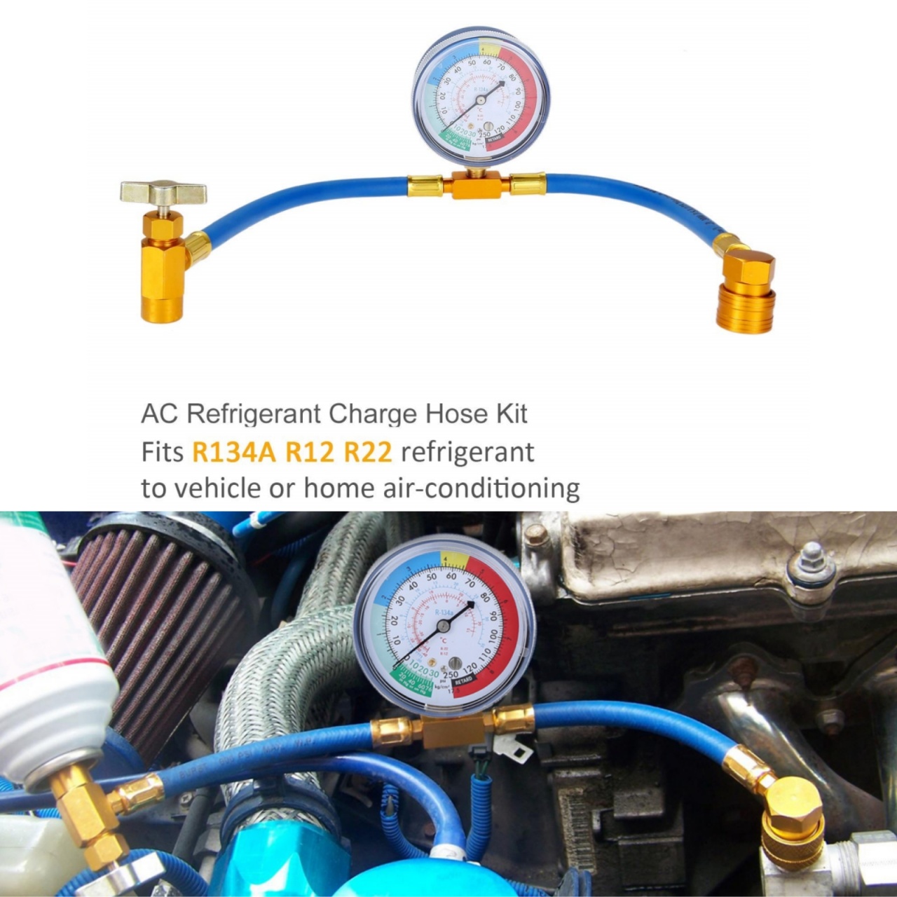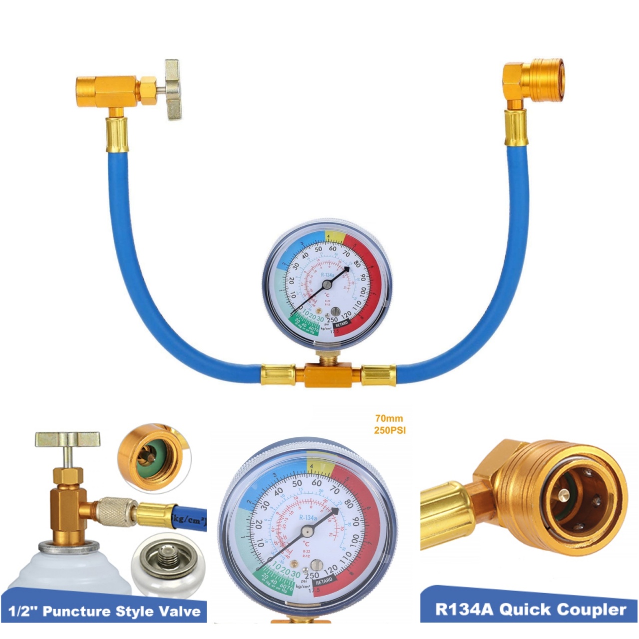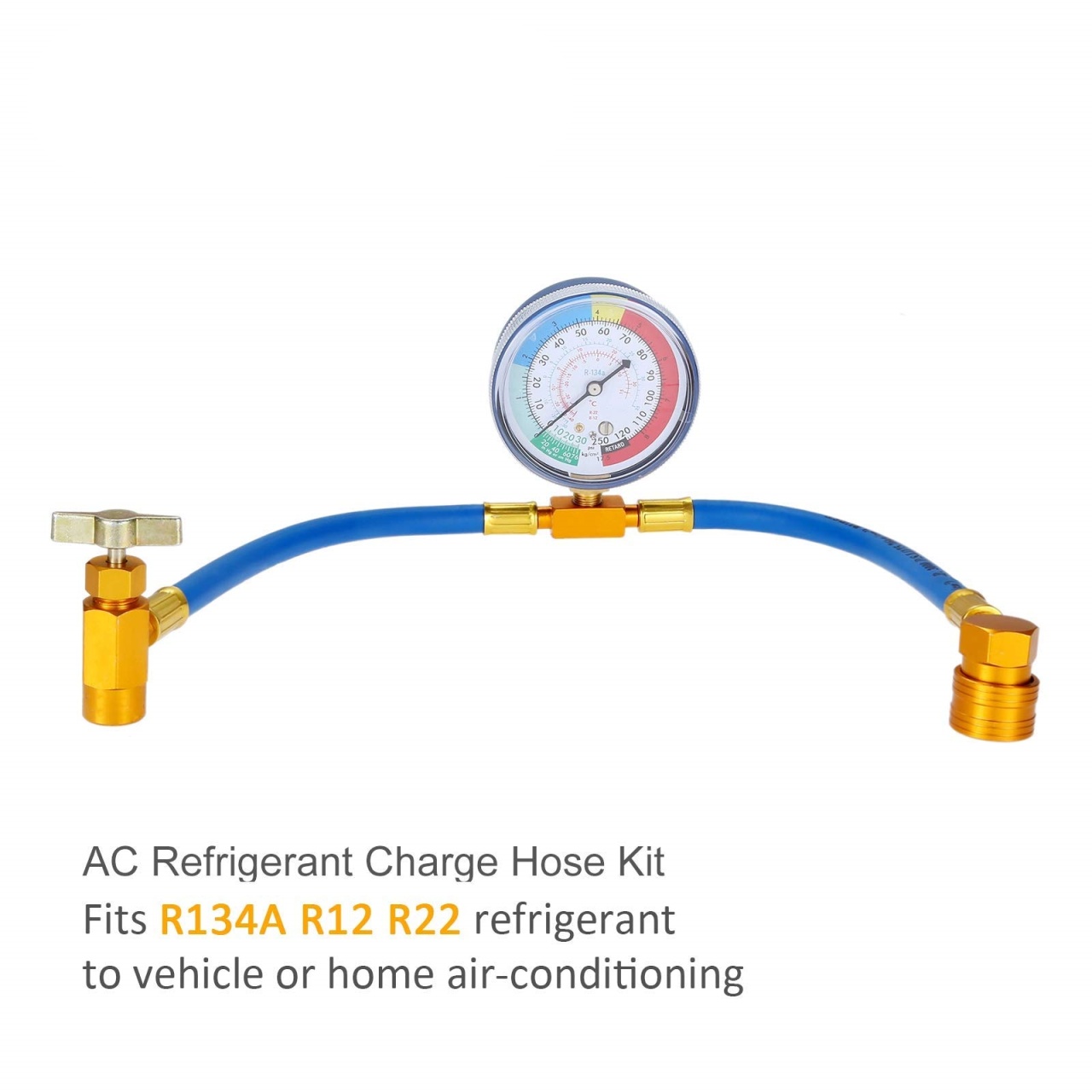 Acest kit de incarcare freon cu manometru este soluia practica pentru completarea rapidă a agentului frigorific in instalatiile de aer conditionat auto sau de acasa. Furtunul flexibil cu cupla rapida pe partea de joasa presiune si robinetul pentru doza de freon permit o conectare sigura, iar manometrul color ajuta la citirea usoara a presiunii si la evitarea supra-incarcarii sistemului. Caracteristici principale: ✔ Kit complet pentru incarcare freon R134a, R12, R22 ✔ Manometru de joasa presiune pana la 250 PSI, cu scala color pentru citire rapida ✔ Furtun flexibil cu lungime totala de aproximativ 39 cm – suficient, dar cu pierderi minime de freon ✔ Cupla rapida pe partea de joasa presiune (low side quick coupler 13 mm) pentru R134a ✔ Robinet tip 1/2 ACME Can Tap (12 mm) pentru conectarea la doza de freon ✔ Corpuri metalice din aluminiu / cupru, rezistente la coroziune si uzura ✔ Potrivit atat pentru service auto, cat si pentru utilizare DIY acasa Specificatii tehnice: Tip produs: furtun incarcare freon cu manometru Domeniu presiune manometru: 0 – 250 PSI (joasa presiune) Diametru manometru: aprox. 70 mm Lungime furtun stanga: aprox. 10 cm Lungime furtun dreapta: aprox. 20 cm Lungime totala ansamblu: aprox. 39 cm Conector stanga: 1/2 ACME Can Tap pentru doza freon (12 mm screw-on) Conector dreapta: cupla rapida joasa presiune R134a 13 mm Compatibil refrigeranti: R134a, R12, R22 Compatibilitate si utilizare: Incarcare si completare freon la instalatii AC auto (R134a) Verificare si reglare presiune pe circuitul de joasa presiune Operatiuni simple de intretinere pentru aer conditionat de casa sau mic utilaj frigorific compatibil cu R134a / R12 / R22 Ideal pentru pasionati auto, ateliere mici si utilizatori care doresc sa isi intretina singuri sistemul de climatizare Avantaje pentru utilizator: ▶ Permite verificarea vizuala a presiunii, evitand supra-incarcarea si posibilele defectiuni ale compresorului ▶ Furtun de lungime optima pentru lucru confortabil sub capota, cu pierderi minime de agent frigorific ▶ Conectare si deconectare rapida datorita cuplei de joasa presiune tip R134a ▶ Constructie robusta, gandita pentru utilizare repetata Acest kit de furtun incarcare freon cu manometru este un accesoriu esential pentru orice service auto sau garaj de acasa, oferind o solutie rapida si eficienta pentru diagnosticarea si completarea agentului frigorific in sistemele de aer conditionat.