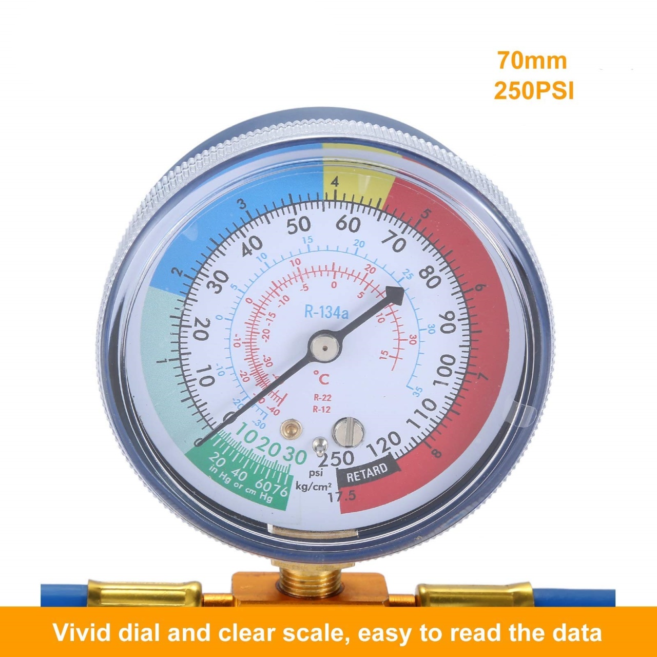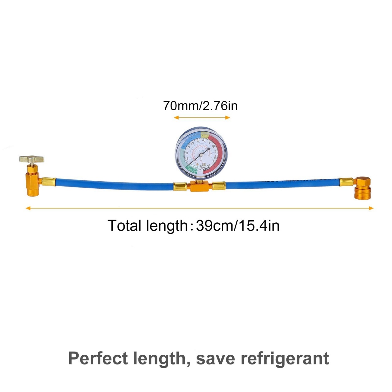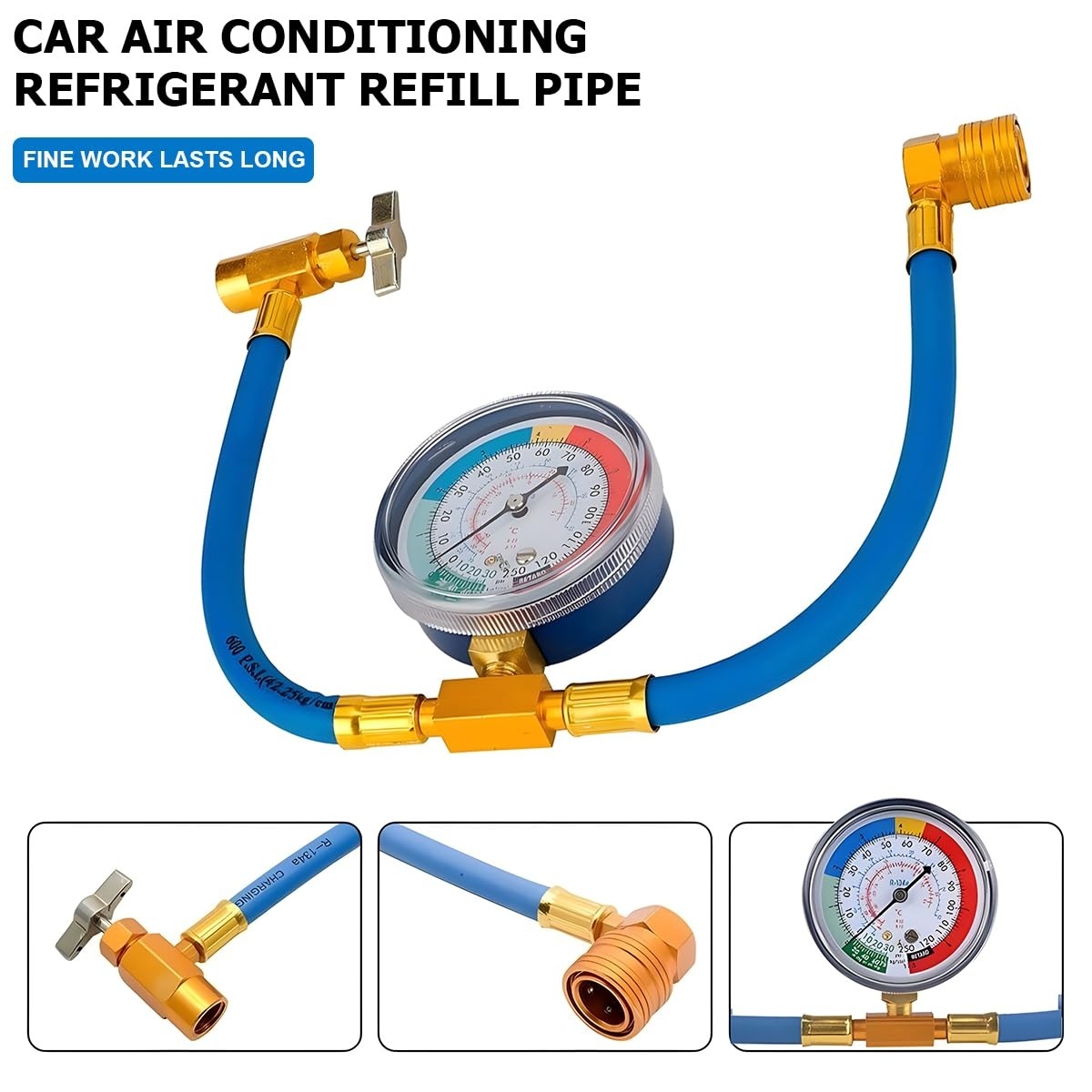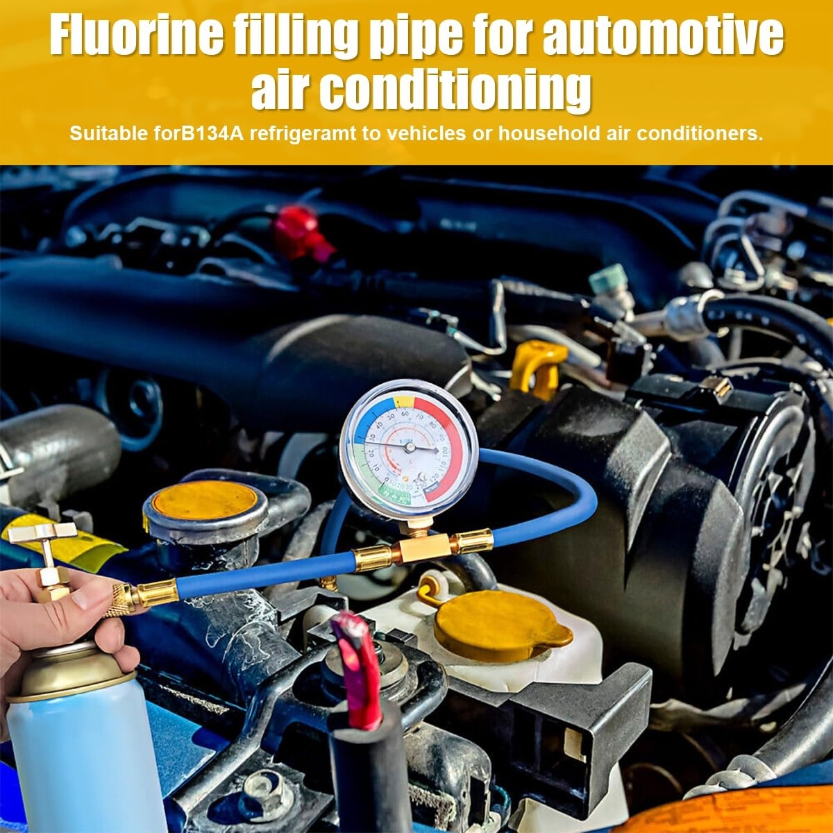 Acest kit de incarcare freon cu manometru este soluia practica pentru completarea rapidă a agentului frigorific in instalatiile de aer conditionat auto sau de acasa. Furtunul flexibil cu cupla rapida pe partea de joasa presiune si robinetul pentru doza de freon permit o conectare sigura, iar manometrul color ajuta la citirea usoara a presiunii si la evitarea supra-incarcarii sistemului. Caracteristici principale: ✔ Kit complet pentru incarcare freon R134a, R12, R22 ✔ Manometru de joasa presiune pana la 250 PSI, cu scala color pentru citire rapida ✔ Furtun flexibil cu lungime totala de aproximativ 39 cm – suficient, dar cu pierderi minime de freon ✔ Cupla rapida pe partea de joasa presiune (low side quick coupler 13 mm) pentru R134a ✔ Robinet tip 1/2 ACME Can Tap (12 mm) pentru conectarea la doza de freon ✔ Corpuri metalice din aluminiu / cupru, rezistente la coroziune si uzura ✔ Potrivit atat pentru service auto, cat si pentru utilizare DIY acasa Specificatii tehnice: Tip produs: furtun incarcare freon cu manometru Domeniu presiune manometru: 0 – 250 PSI (joasa presiune) Diametru manometru: aprox. 70 mm Lungime furtun stanga: aprox. 10 cm Lungime furtun dreapta: aprox. 20 cm Lungime totala ansamblu: aprox. 39 cm Conector stanga: 1/2 ACME Can Tap pentru doza freon (12 mm screw-on) Conector dreapta: cupla rapida joasa presiune R134a 13 mm Compatibil refrigeranti: R134a, R12, R22 Compatibilitate si utilizare: Incarcare si completare freon la instalatii AC auto (R134a) Verificare si reglare presiune pe circuitul de joasa presiune Operatiuni simple de intretinere pentru aer conditionat de casa sau mic utilaj frigorific compatibil cu R134a / R12 / R22 Ideal pentru pasionati auto, ateliere mici si utilizatori care doresc sa isi intretina singuri sistemul de climatizare Avantaje pentru utilizator: ▶ Permite verificarea vizuala a presiunii, evitand supra-incarcarea si posibilele defectiuni ale compresorului ▶ Furtun de lungime optima pentru lucru confortabil sub capota, cu pierderi minime de agent frigorific ▶ Conectare si deconectare rapida datorita cuplei de joasa presiune tip R134a ▶ Constructie robusta, gandita pentru utilizare repetata Acest kit de furtun incarcare freon cu manometru este un accesoriu esential pentru orice service auto sau garaj de acasa, oferind o solutie rapida si eficienta pentru diagnosticarea si completarea agentului frigorific in sistemele de aer conditionat.