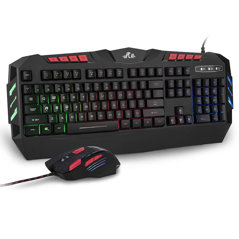 Kit tastatura si mouse gaming, iluminate LED, USB, taste multimedia, 2400 DPI Kit tastatura si mouse pentru gaming, iluminate LED mix culori, resigilat, produs nou, lipseste mouse-ul Kit-ul este compus din tastatura si mouse special create pentru gaming. Sunt confectionate din materiale de calitate, confortabile si placute la atingere. Sunt luminate LED si iti ofera posibiltate sa setezi intensitatea luminii sau chiar sa o opresti. Iluminarea se activeaza apasand tasta * situata intre tastele FN si CTRL. Intensitatea luminii poate fi modificata cu ajutorul tastelor FN+PG UP(creste intensitatea) si FN+PG DN (scade intensitatea). Daca doriti o iluminare intermitenta a tasteleor apasati tastele FN+*. Tastatura este prevazuta cu taste multimedia pentru controlul playerului muzical Caracteristici: - kit pentru gaming format din tastatura si mouse; - conexiune cu fir; - interfata USB; - iluminata LED mix culori; - nu necesita driver de instalare, functioneaza plug&play; - design ergonomic pentru utilizare indelungata; - compatibil cu: windows 2000, XP, ME, Vista, 7, 8, 10 si alte sisteme de operare; - functia iluminare nu functioneaza cu sistemele MAC. Tastatura: - 104 taste; - durata de viata 5 milioane de apasari; - dimensiune 480x215x32 mm(Lxlxh); - temperatura de operare 0 - 45 grade Celsius; - temperatura de depozitare -20 - +60 grade celsius; - umiditate 20 - 90%; - greutate 892 g. Mouse: - 8 taste; - dimensiune 128x81x40 mm; - greutate 160 g; - lungime fir 1.5m; - DPI reglabil 1000/1600/2000/2400 - iluminat ciclu de 7 culori; - temperatura de operare 0 - 45 grade Celsius; - umiditate 20 - 90%. Kit-ul este format din tastatura si mouse special create pentru pasionatii de gaming.