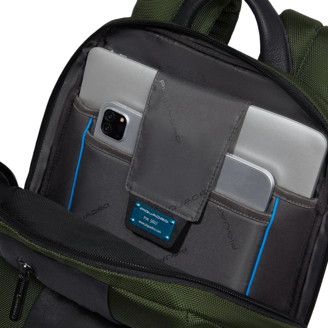 Rucsacul Piquadro pentru laptop, realizat din material textil reciclat, combină funcționalitatea cu un design modern și sustenabil. Conceput pentru utilizarea zilnică, acest rucsac compact are un compartiment dedicat pentru laptop, buzunare frontale cu fermoar și elemente din piele care îi conferă un aspect elegant și rezistent. Este soluția ideală pentru cei care caută un accesoriu practic, dar cu stil.