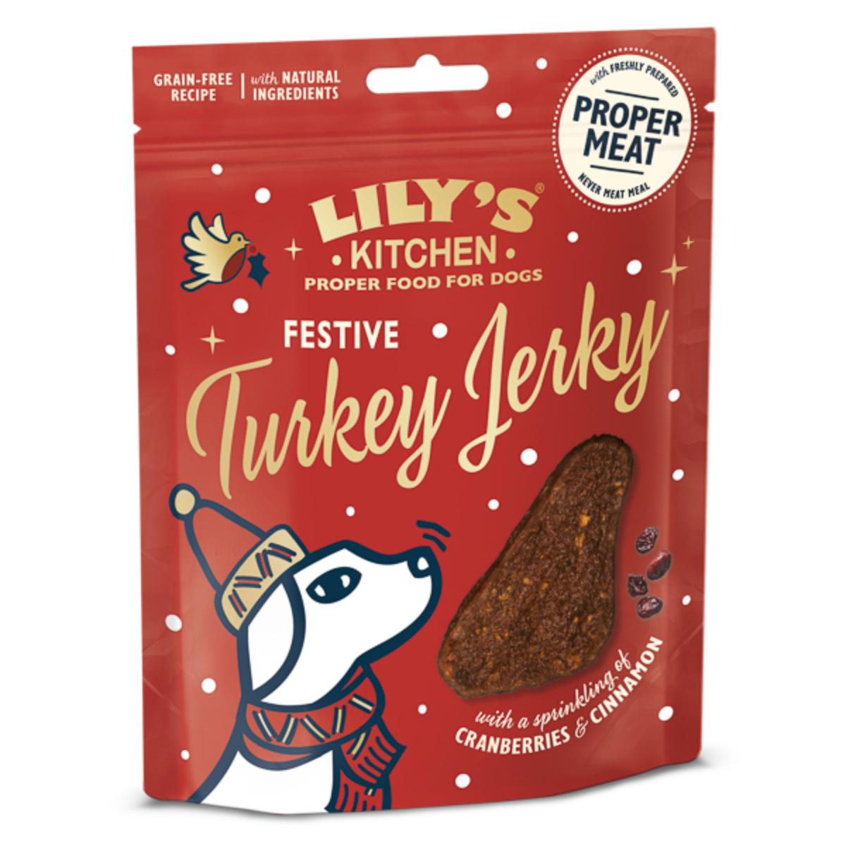 LILYS KITCHEN Christmas Festive Jerky, XS-XL, Curcan, punguță recompense fără cereale câini, 70g