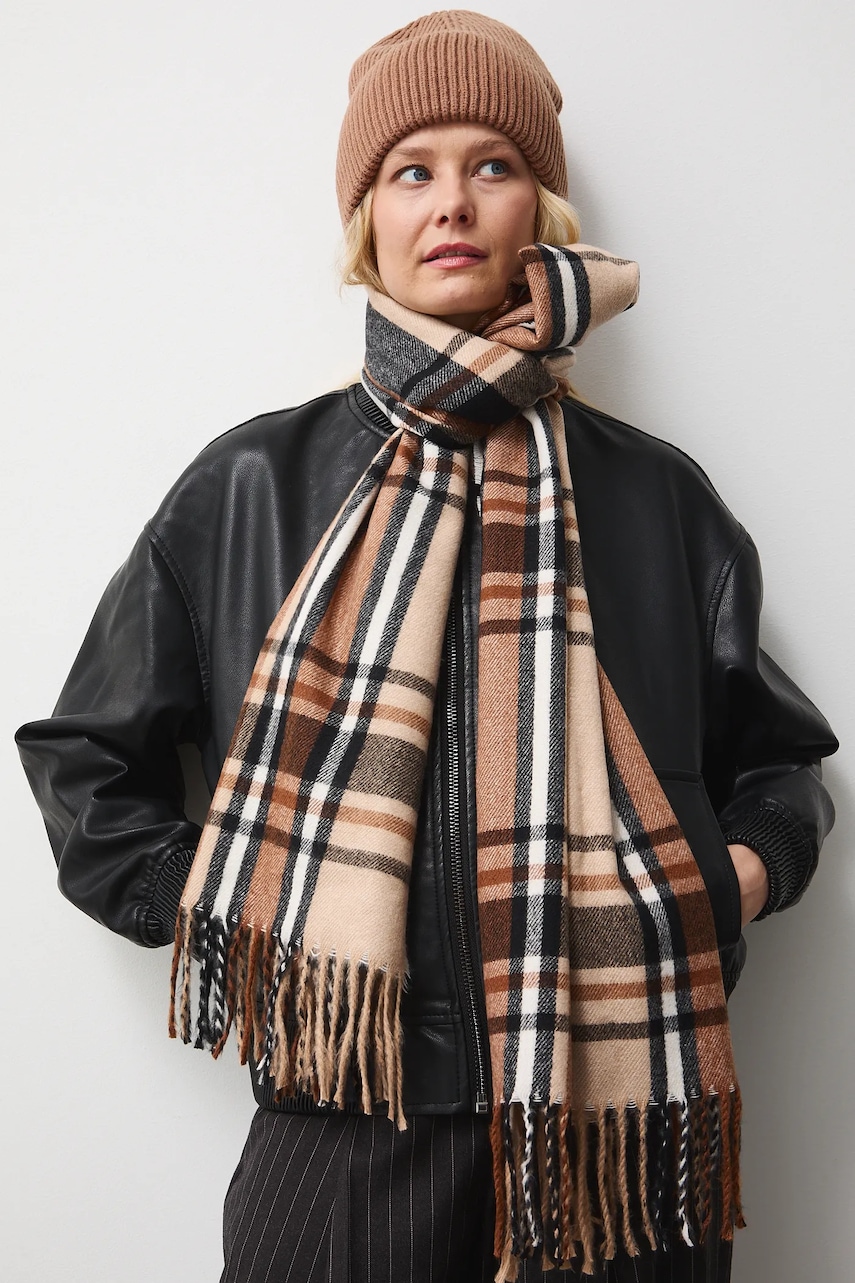 - Țesătură de grosime medie. - Model cu ciucuri decorativi. - Tesatura ornamentata. - Model în carouri. - Dimensiunile: 64 x 200 cm.