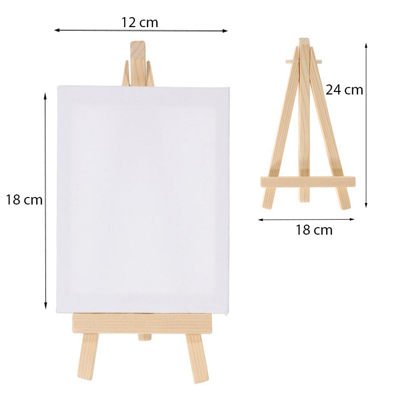 Mini sevalet cu panza 12x18 cm, pliabil, suport lemn pin Sevaletul este confectionat din lemn de pin, iar panza din bumbac, fiind recomandat pentru lucrari de arta, mestesuguri, pictura pentru copii, etc. Este usor si portabil, fiind ideal pentru pictura in ulei, pentru vopsele acrilice sau tempera. inaltimea totala a sevaletului impreuna cu suportul din lemn este de 24 cm, iar latimea de 18 cm. Specificatii: - mini sevalet de masa cu panza; - recomandat pentru lucrari de arta, mestesuguri, pictura pentru copii; - picioare plate pentru o mai buna stabilitate,; - usor de pliat si transportat; - ideal pentru pictura in ulei, acril si tempera; - dimensiune panza: 18 x 12 cm (latime x inaltime); - dimensiuni sevalet 24 x 18 cm (inaltimea x latimea); - confectionat din lemn de pin; - culoare natur.