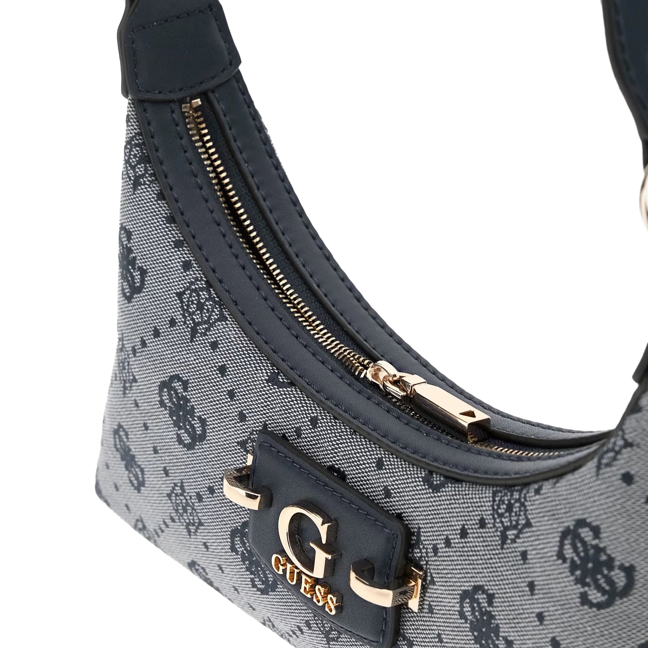 Geanta de umăr Neda 4G Peony Logo de la Guess îmbină cu rafinament un design clasic cu accente moderne, fiind ideală pentru ținutele de zi cu zi. Confecționată din material sintetic durabil, aceasta se evidențiază prin imprimeul floral cu monogramă 4G care adaugă o notă feminină și contemporană. Forma sa ușor trapezoidală oferă un plus de eleganță și funcționalitate, iar bareta de umăr lungă permite o purtare confortabilă. Logo-ul metalic aplicat frontal accentuează identitatea brandului și completează perfect estetica urbană a genții