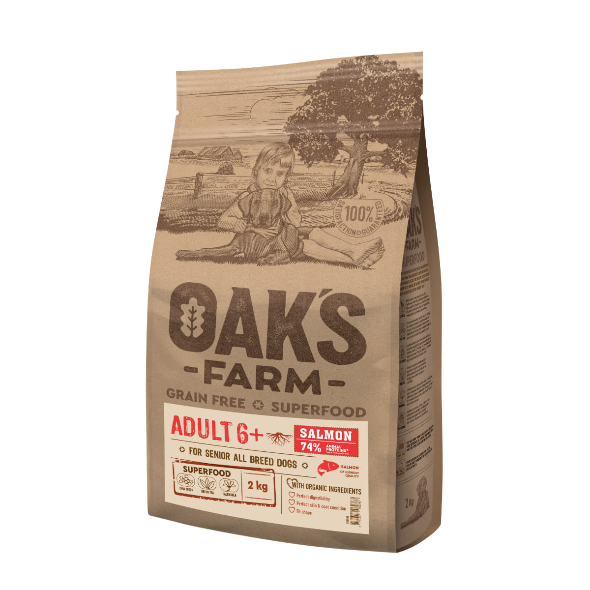 OAKS FARM Senior 6+, XS-XL, Somon, hrană uscată fără cereale câini senior, 2kg