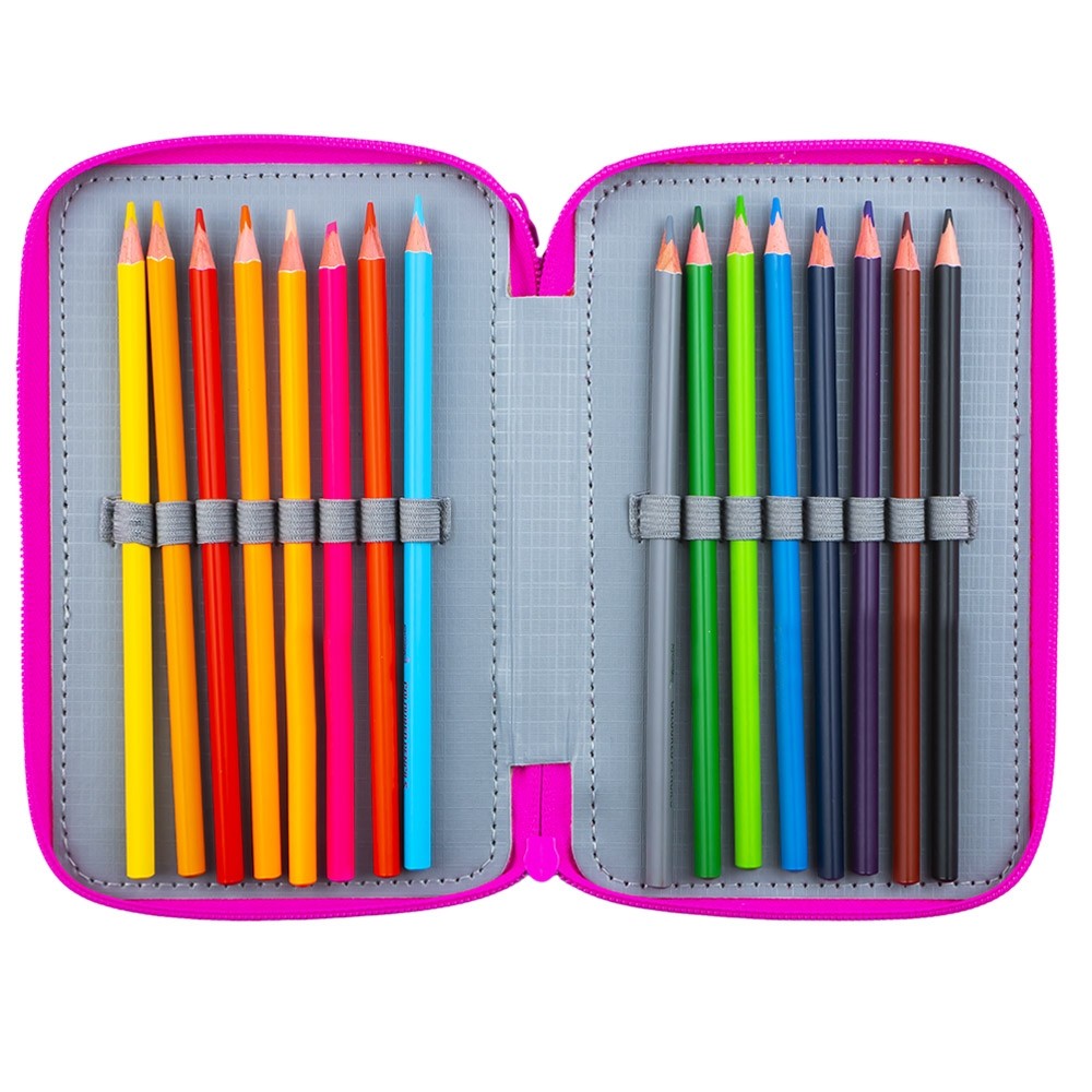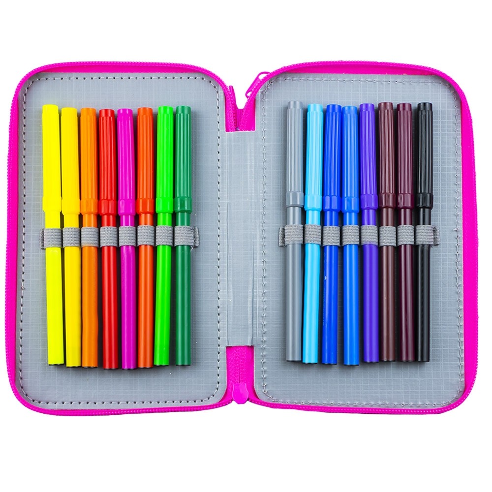 Penar fete, complet echipat, 39 piese, 3 compartimente, inchidere tip fermoar, spatiu orar, 3 ani+ Puteti incepe anul scolar cu un penar cu design modern care va atrage atentia oricarei fetite. Este un penar echipat cu multe instrumente de scris si diferite accesorii, precum: creioane grafit, pixuri, creioane colorate, ascutitoare, radiera, rigla, orar. Compartimentarea este una eficienta, fiind prevazut cu 3 compartimente spatioase inchise cu fermoar. Este usor si practic, avand o dimensiune de 20 x 14 x 6.5 cm. Specificatii: - penar scolar; - imprimeu urs koala; - dedicat fetelor; - echipat cu 39 de piese; - 3 compartimente; - 3 fermoare; - suporturi flexibile pentru instrumentele de scris; - material textil; - dimensiune 20 x 14 x 6.5 cm; - culoare multicolor.