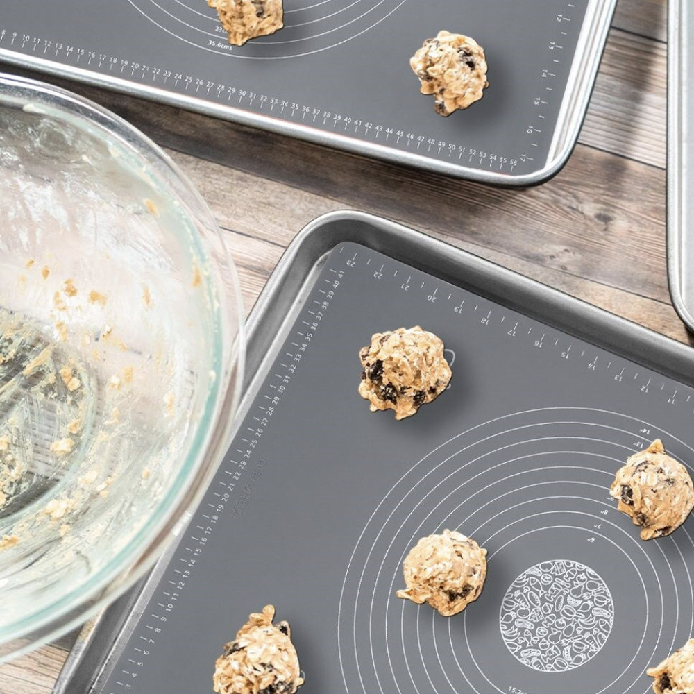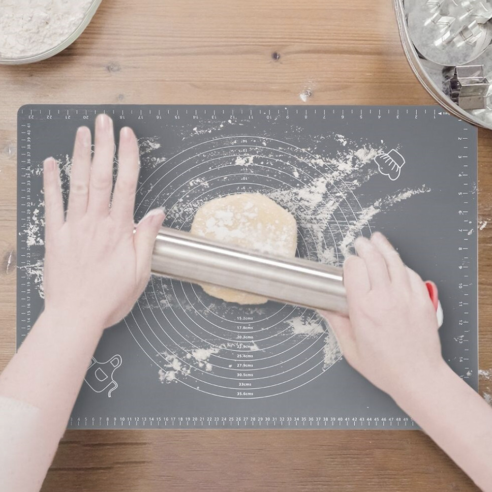 Plansa din silicon Pufo este prevazuta cu marcaje de masurare pentru framantare sau rulare produse de patiserie, cofetarie, brutarie. De acum va fi mult mai usor sa intinzi aluatul, placinta, crusta de pizza, painea, biscuitii si aluatul de prajituri. Pe suprafata ei se poate modela si framanta cu usurinta aluatul deoarece acesta nu se lipeste si se poate taia la dimensiunea dorita. Plansa are gradatii de lungime si diametru pentru a te ajuta sa obtii dimensiunea ideala a aluatului pentru preparatele tale preferate. Flexibila si reutilizabila Fata cu suprafata antiaderenta Usor de depozitat ideala pentru orice bucatarie fiind usor de utilizat Plansa are gradatii de lungime si diametru pentru a te ajuta sa obtii dimensiunea ideala a aluatului pentru preparatele tale preferate. Dimensiune: 64 x 49 cm Culoare : gri MATERIAL DE CALITATE Aceasta plansa este fabricata din silicon non-toxic, rezistent la temperaturi inalte. SUPRAFATA ANTIDERAPANTA Partea inferioara este prevazuta cu o textura antiderapanta, aceasta se va mentine fixata pe blatul de lucru sau pe masa de bucatarie. USOR DE CURATAT Siliconul este un material usor de curatat, poti sterge aluatul sau orice resturi cu usurinta.