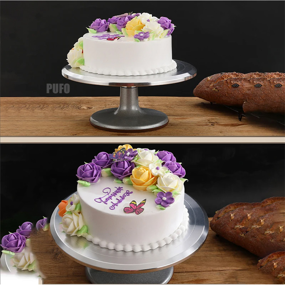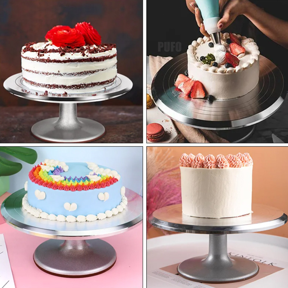 Platoul decorativ rotativ Pufo Cake pentru ornarea tortului se roteste in ambele directii, permitand sa decorezi mai usor. Este potrivit pentru persoanele dreptace si stangace. Dispune de suprafata antiderapanta. Poate fi un cadou perfect de casa noua, pentru orice bucatar. Ideal pentru prezentarea, expunerea in vitrine si decorarea tortului Suport rotativ tort metalic, recomandat pentru ornare si prezentare Elegant si incapator, aduce un plus de rafinament servirii desertului tau preferat Accesoriu ce ar trebui sa nu lipseasca din nici o bucatarie, cofetarie, restaurant, industria horeca Dimensiune : 30 cm Material : inox Culoare : argintiu