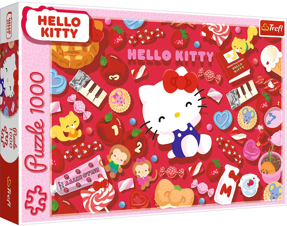 Puzzle Hello Kitty, alcatuite din 1000 de piese, o prezinta pe simpatica eroina a desenului animat cu acelasi nume. Dupa asamblare, va rezulta o imagine cu dimensiunile de 68.3x48 cm.Produsul este fabricat in Polonia, folosind materiale ecologice de inalta calitate.