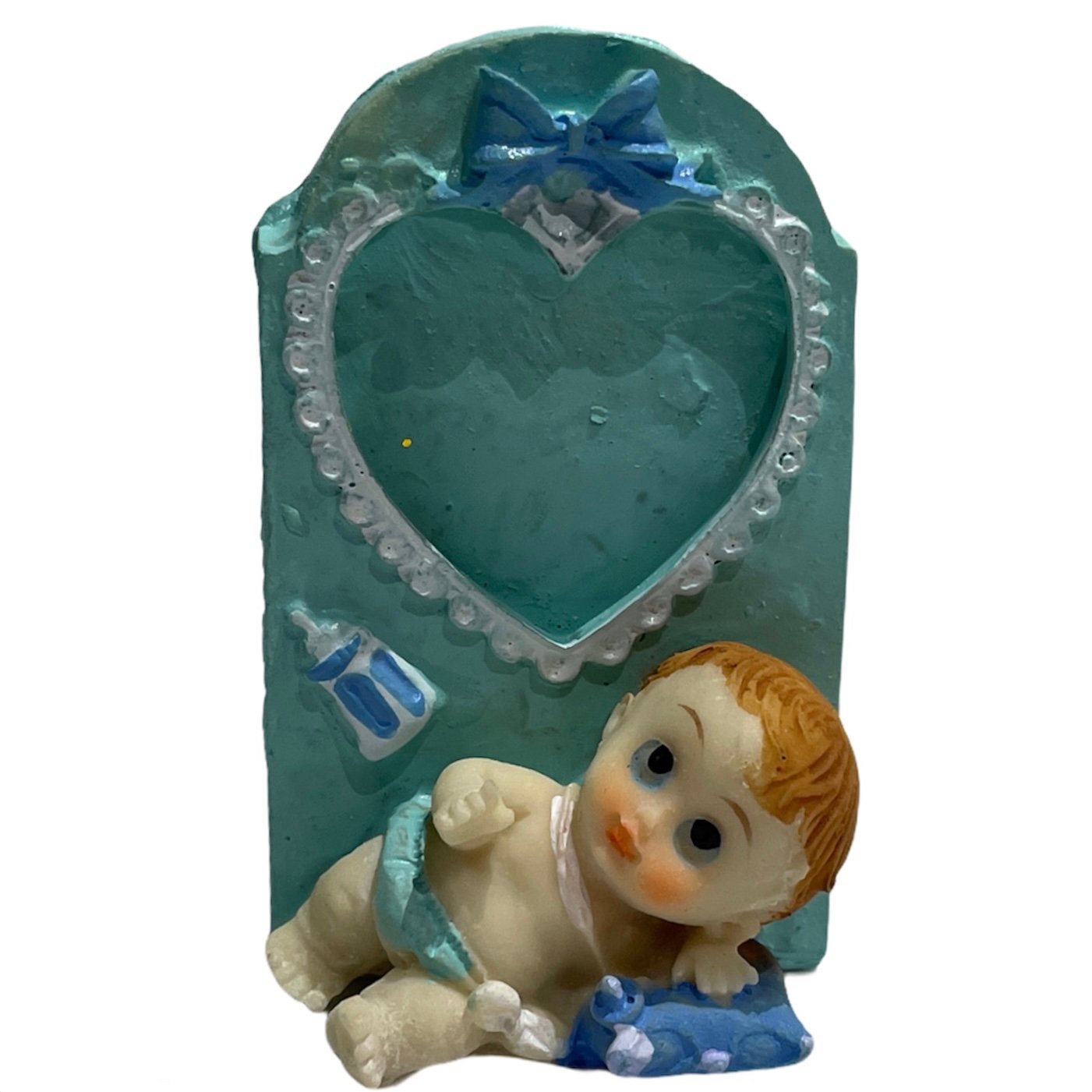 Bibeloul ce reprezintă un bebeluș așezat pe o pernă poate fi o mărturie drăguță oferită invitaților la botez.Se poate pune în rama foto poza bebelușului . Figurina este realizată din polirășină vopsită și poate prezenta mici imperfecțiuni de turnare. Dimensiuni 7 x 4 x 3 cm