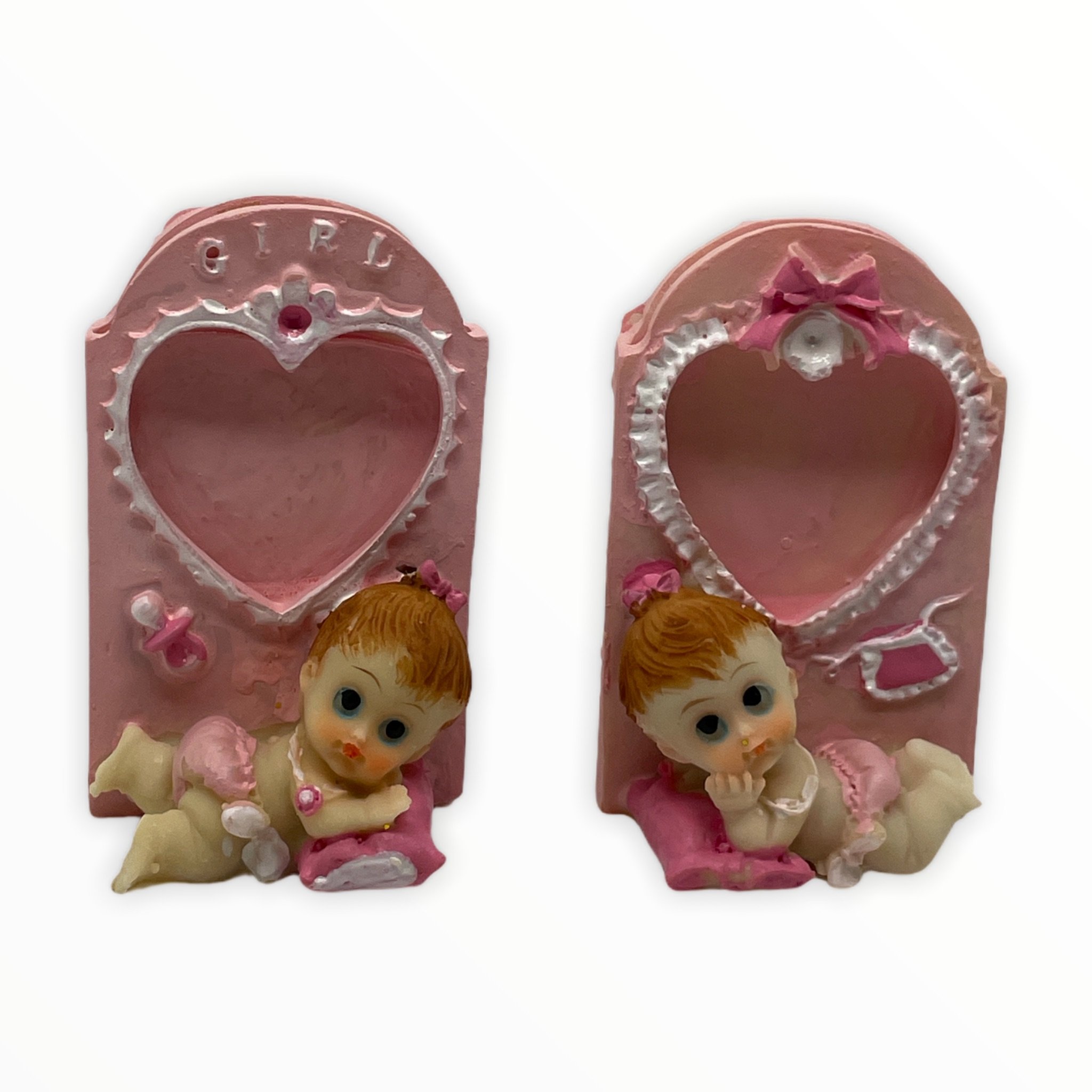 Bibeloul ce reprezintă un bebeluș așezat pe o pernă poate fi o mărturie drăguță oferită invitaților la botez.Se poate pune în rama foto poza bebelușului . Figurina este realizată din polirășină vopsită și poate prezenta mici imperfecțiuni de turnare. Dimensiuni 7 x 4 x 3 cm