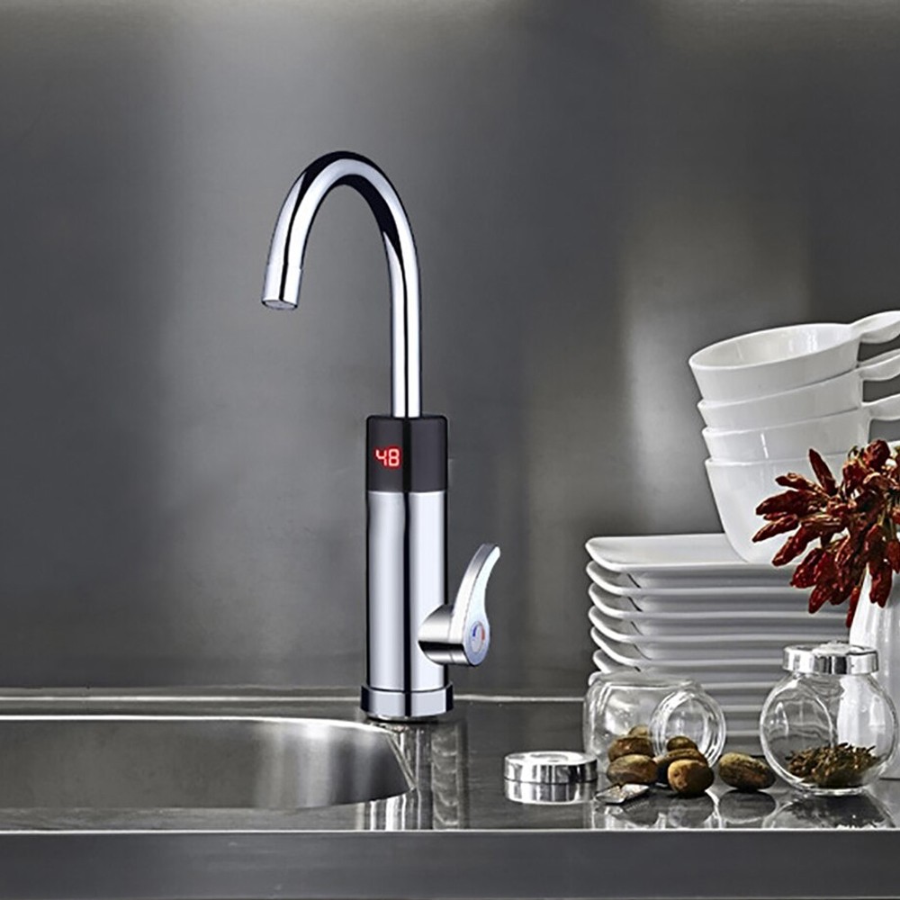 Robinet electric 3500W, afisaj temperatura LED, montare chiuveta, reglabil, IPX4 Robinetul electric are capacitatea de a inclazi apa foarte repede cu o temperatura maxima de 60 grade Celsius. Acesta este usor de instalat si utilizat si va ajuta sa economisiti energie. Robinetul functioneaza prin alimentarea la reteaua electrica 220V si are o putere maxima de 3500W. Acest robinet furnizeaza atat apa rece cat si apa calda si vine insotit de garniturile necesare pentru instalare. Caracteristici: - robinet electric pentru apa calda/rece; - putere maxima 3500W; - alimentare la reteaua de energie electrica; - tensiune de alimentare 220V; - frecventa 50Hz; - asigura o incalzire foarte rapida a apei; - montare prin fixare pe chiuveta; - presiune apa 0.04-0.06 MPa; - factor de protectie IPX4; - temperatura apa calda cuprinsa intre 30 si 60 grade Celsius; - prevazut cu protectie la supraincalzire; - temperatura apei poate fi reglata; - furnizeaza atat apa calda cat si rece; - unghi de rotatie la 120 grade; - confectionat din material ABS durabil si inox; - usor de montat si utilizat; - economisiti energie; - dispune de cablu de alimentare: - lungime cablu 117 cm; - garnituri incluse in pachet; - dispune de un design simplu si elegant; - inaltime totala baterie 27.5 cm; - inaltime totala robinet 24 cm; - culoare argintiu.