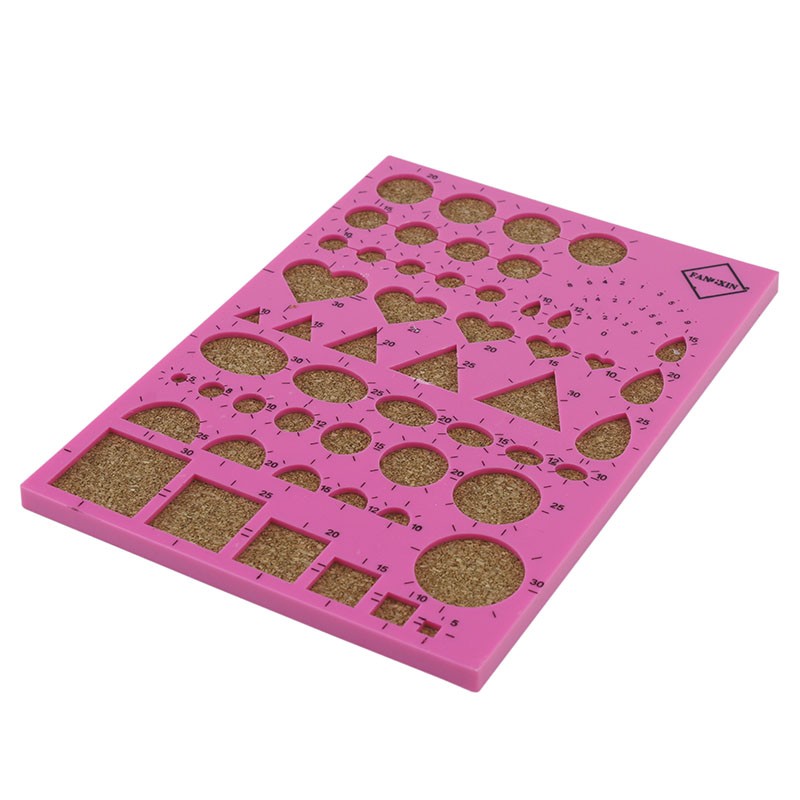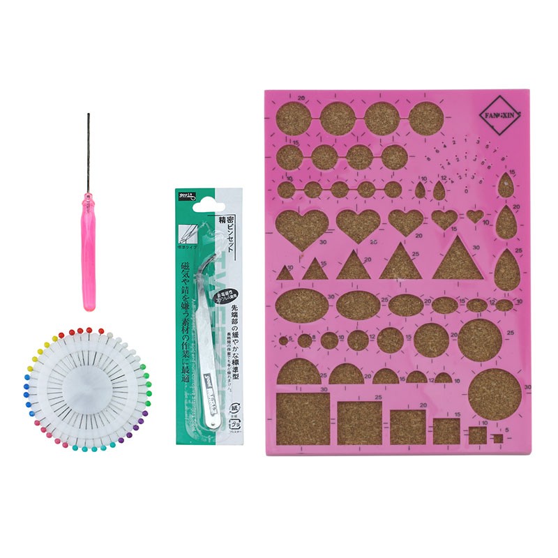Sablon 53 modele quilling, penseta, betisor rasucire, ace cu gamalie Sablon cu instrumente pentru prelucrarea hartiei quilling, potrivit pentru orice proiect de quilling si de mare ajutor pentru rularea fasiilor si pentru combinarea diverselor forme din hartie. Caracteristici: - sablon cu 53 de modele diferite ca forma si marime; - dimensiunile formelor variaza intre 5 si 30 mm; - forme existente: cerc, migdala, inima, triunghui, oval, arc, patrat; - plansa din plastic; - prevazut cu tabla din pluta; - penseta metalica cu varf indoit la 45⁰; - latime varf penseta 1 mm; - lungime penseta 110 mm; - include instrument pentru rasucit fasiile din hartie, cu maner din plastic; - grosime varf instrument de rasucit 1 mm; - lungime totala instrument de rasucit 125 mm; - set de 40 ace cu gamalie colorata in 8 culori, cate 5 ace din fiecare culoare; - marime ac 33 mm; - dimensiune planseta 15x21 cm. Produsul este disponibil in doua variante de culoare: - galben; - roz. Alegerea culorii preferate se face folosind selectorul de mai sus.
