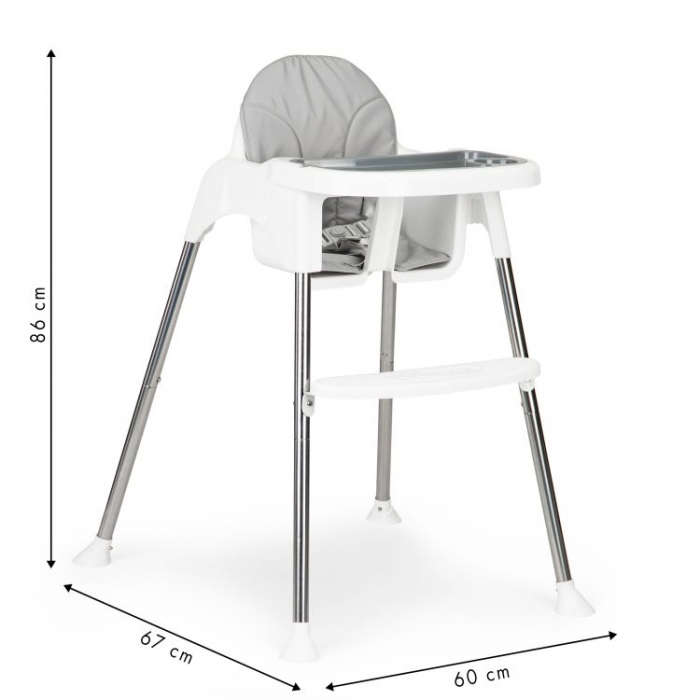 Designul special al scaunului permite schimbarea inaltimii sale. Scaunul poate fi utilizat in 2 variante1. Scaun de alimentare2. Un scaun mai micScaunul de masa are picioare antiderapante din cauciuc,