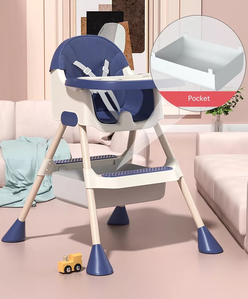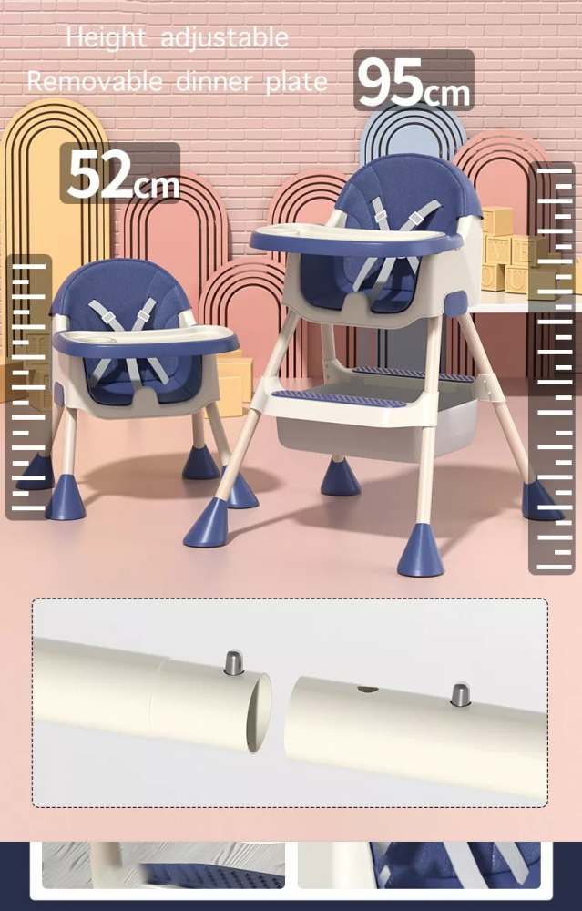 Scaun de masa Little Mom City Dar Blue transformabil, inaltime reglabila, tava dubla ajustabila, Suport picioare, centura de siguranta, husa detasabila, Varsta 6 luni+