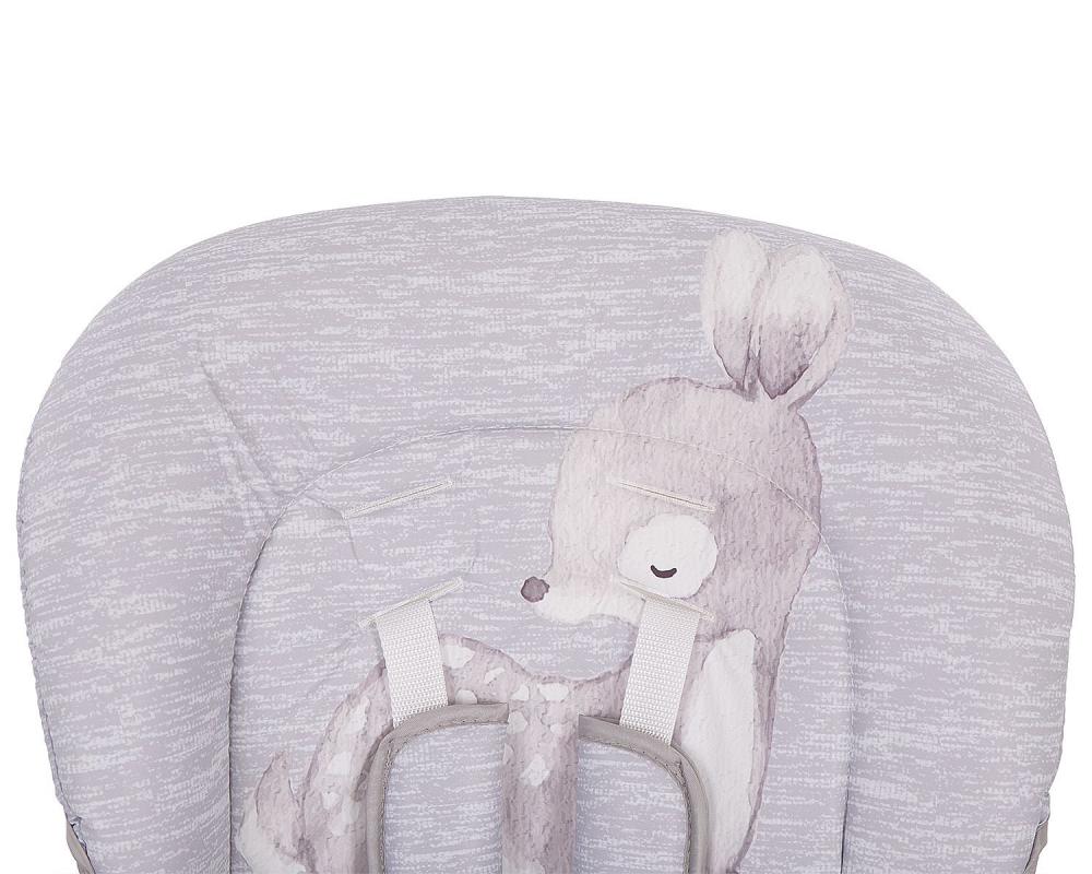 Scaun de masa pentru copii Sweet Nature Grey Deer cu inaltime reglabila, pliabil, spatar reglabil, roti ,husa impermeabila detasabila, suport picioare reglabil, tavita dubla,centuri de siguranta,sistem siguranta antialunecare