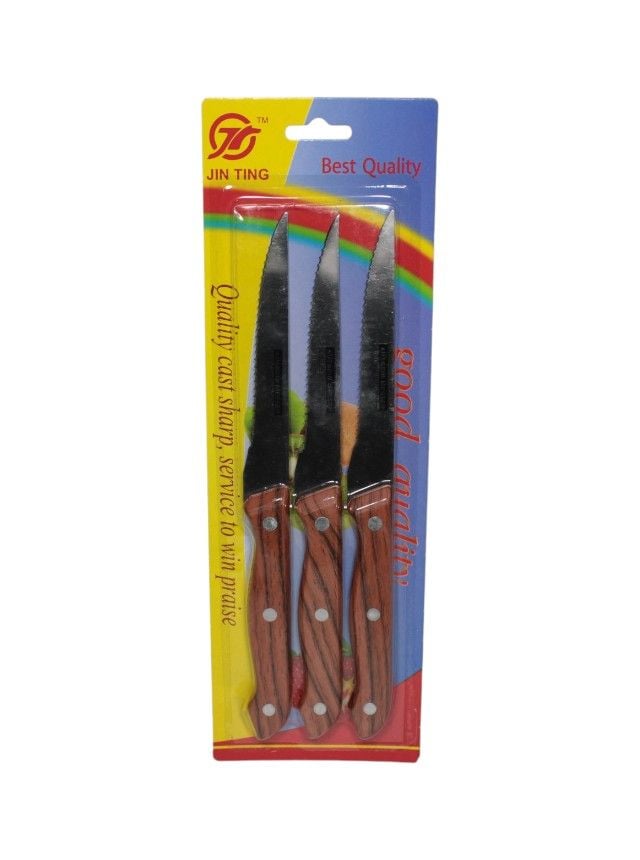 Set 3 Cuțite Engros, 22.5 cm, cu Mâner de Plastic Acest set de 3 cuțite este un produs de bază, esențial pentru magazinele de articole de bucătărie, supermarketuri, librării și chioșcuri. Cu un design simplu și funcțional, aceste cuțite sunt perfecte pentru a simplifica procesul de tăiere a legumelor, fructelor și a altor alimente. Mânerul din plastic asigură o prindere sigură și confortabilă, iar lamele de 22.5 cm sunt potrivite pentru o varietate de utilizări. Este un produs indispensabil, cu o cerere constantă pe piață, fiind ideal pentru orice gospodărie. Avantaje pentru achiziții Engros (B2B): Preț extrem de competitiv: Costul redus de achiziție permite o marjă de profit ridicată, făcându-l un produs ideal pentru vânzări la volum.Produs de bază: Un articol cu cerere constantă, util pentru uz casnic.Ideal pentru vânzări de impuls: Fiind un produs mic, util și la un preț accesibil, este perfect pentru a fi expus la casă sau în zonele cu trafic intens.Versatilitate: Poate fi vândut în diverse locații, de la magazine de articole de bucătărie la librării și supermarketuri.Ambalare practică: Setul de 3 cuțite, ambalat la blister, facilitează stocarea și vânzarea.