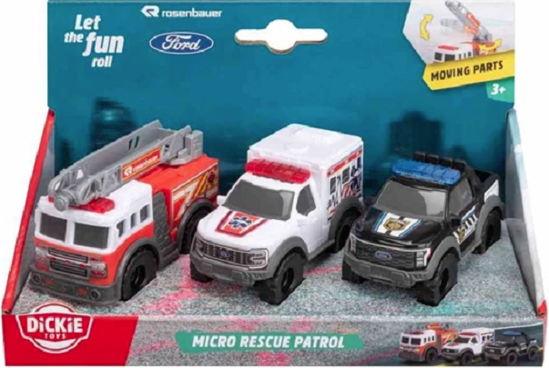 Esti pregatit pentru salvare? Cu setul de joaca Dickie Micro Rescue Patrol, cei mici pot salva acum lumea! Acest set este perfect pentru a explora lumea vehiculelor de urgenta.Setul include: Masina de pompieri: Pentru a stinge flacarile. Ambulanta: Pentru prim ajutor. Masina de politie: Pentru a mentine ordinea8 cm fiecareStimuleaza jocul creativ si imaginatia. Recomandat pentru copii cu varsta de 3 ani si peste.”