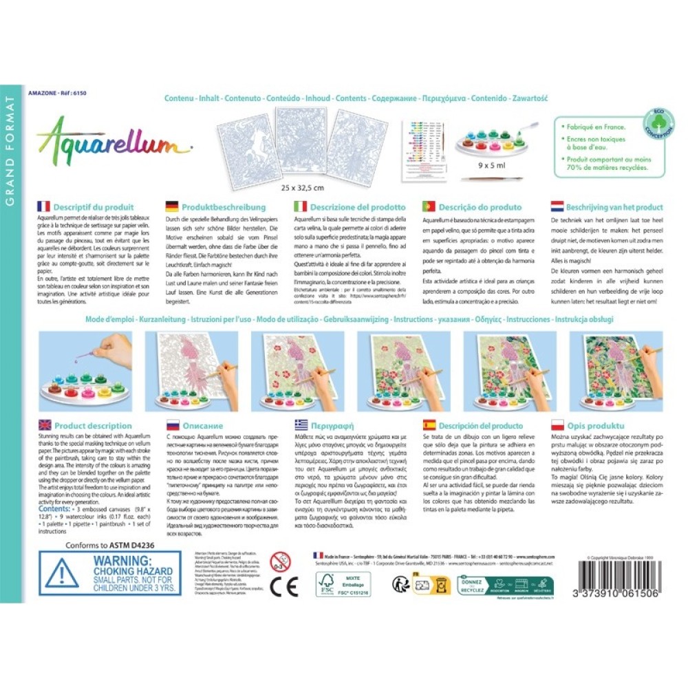 Setul creativ Aquarellum ajuta artistii de toate varstele sa descopere placerile picturii in acuarela prin tehnica sertisajului, invatand sa combine culorile si putand astfel sa creeze adevarate capodopere! In aceasta tehnica tablourile sunt predesenate cu ajutorul unui contur fin de ceara ecologica. Care sunt avantajele tehnicii sertisajului Conturul de ceara va impiedica amestecarea culorilor diferite care se pun in suprafetele vecine, deoarece culoarea nu adera pe el. La finalizarea picturii toate contururile raman albe si creeaza un contrast deosebit intre culorile vii din tablou. Ce contine un set creativ Aquarellum Amazon 3 tablouri predesenate 9 culori + 1 pipeta pentru dozaj 1 pensula 1 paleta Despre SentoSphereAventura SentoSphere a inceput in 1989. Fondatoarea Veronique Debroise a fost intotdeauna convinsa ca un bun simt al mirosului este esential pentru dezvoltarea copilului. Acest lucru a determinat-o sa creeze Follow your Nose: un joc olfactiv bazat pe recunoasterea mirosului. In scurt timp, Veronique Debroise si-a dat seama de importanta celorlalte simturi umane. Prin urmare, ea a creat produse educationale axate pe simtul tactil, al gustului si vederii. Intrucat componenta senzoriala este strans legata de creativitatea artistica, Veronique Debroise a lansat colectiile Aquarellum, Sablimage, Patarev, Art & Creations si multe altele. Nu in ultimul rand, brandul frantuzesc SentoSphere foloseste ingrediente sigure si materiale ecologice.