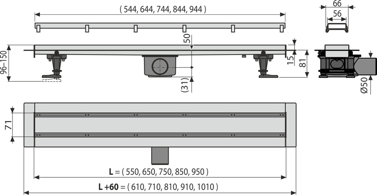 Aplicabilitate: Pentru folosire în interior Pentru evacuarea apei din incinta de duș Pentru instalarea în spații deschise sau lângă peretele zonei de duș Acces pentru scaune cu rotile Caracteristici / Specificatii Tehnice: Canal de scurgere pentru duș fabricat din otel inoxidabil (material călit prin decapare, pasivizare și lustruire electrochimică) Pantă interioară înclinată a corpului canalului de scurgere Înălțime de construcție 81 mm Înălțime reglabilă Bandă adezivă pentru hidroizolare de calitate Canalul de scurgere este fabricat dintr-o singură bucată din oțel inoxidabil Corpul canalului de scurgere pentru duș este protejat de inserția de polistiren Designul este determinat de gratarul-dublu DOUBLE - pe o parte este un gratar complet din oțel inoxidabil, iar pe cealaltă parte are opțiunea pentru incastrarea plăcilor ceramice sau a lemnului impermeabil cu grosimea de 12 mm Grosime 25 mm Material corp canal de scurgere: oțel inoxidabil de 1,5 mm, DIN 304 Sifon anti miros 30 mm Debit 50 l/min Rezistența sifonului anti-miros la presiune 380 Pa Diametrul țevii Deșeuri 50 mm Grosimea minimă a betonului 81 mm Înălțime totală de instalare 96 – 150 mm Clasa de sarcină – K3 300 kg Descarcari: