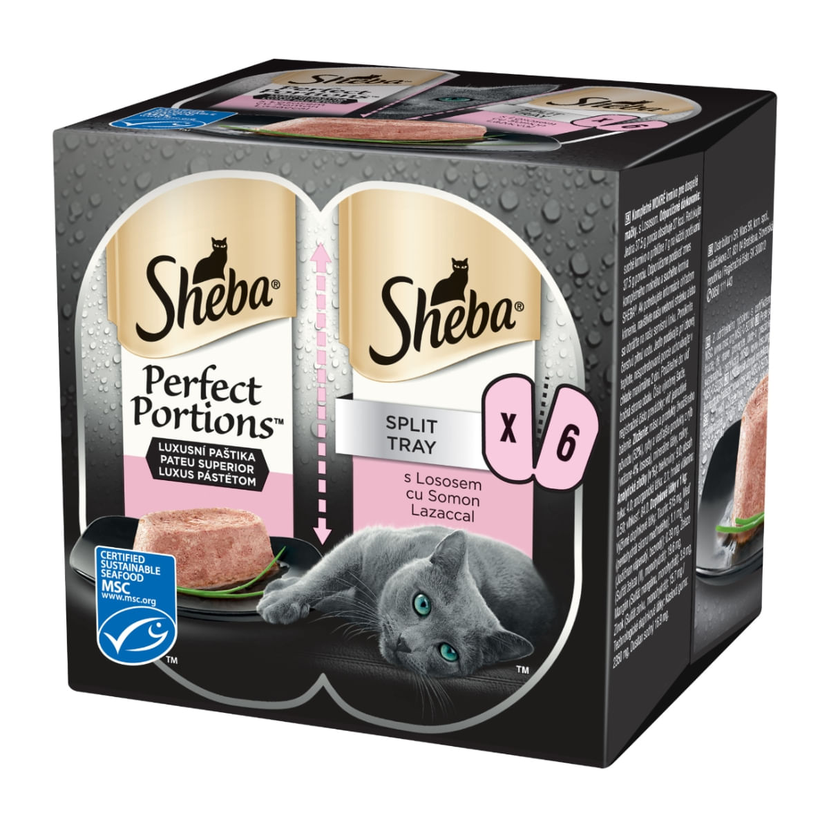 SHEBA Perfect Portions, Somon, tăviță hrană umedă pisici, (pate), multipack, 37.5g x 6buc