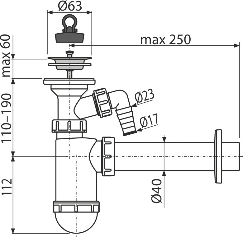 Aplicabilitate: Sifon lavoar DN40 cu sita din otel inoxidabil DN63 si legatura la masina de spalat Alcaplast A41P Pentru lavoar Caracteristici / Specificatii Tehnice: Conectarea la conducta de evacuare de Ø40 mm Cu conector pentru mașină de spălat rufe sau vase Material: polipropilenă Sifon anti miros 58 mm Debit 57 l/min Rezistența termică 95 ˚C Racord furtun 17 – 23 mm Descarcari: