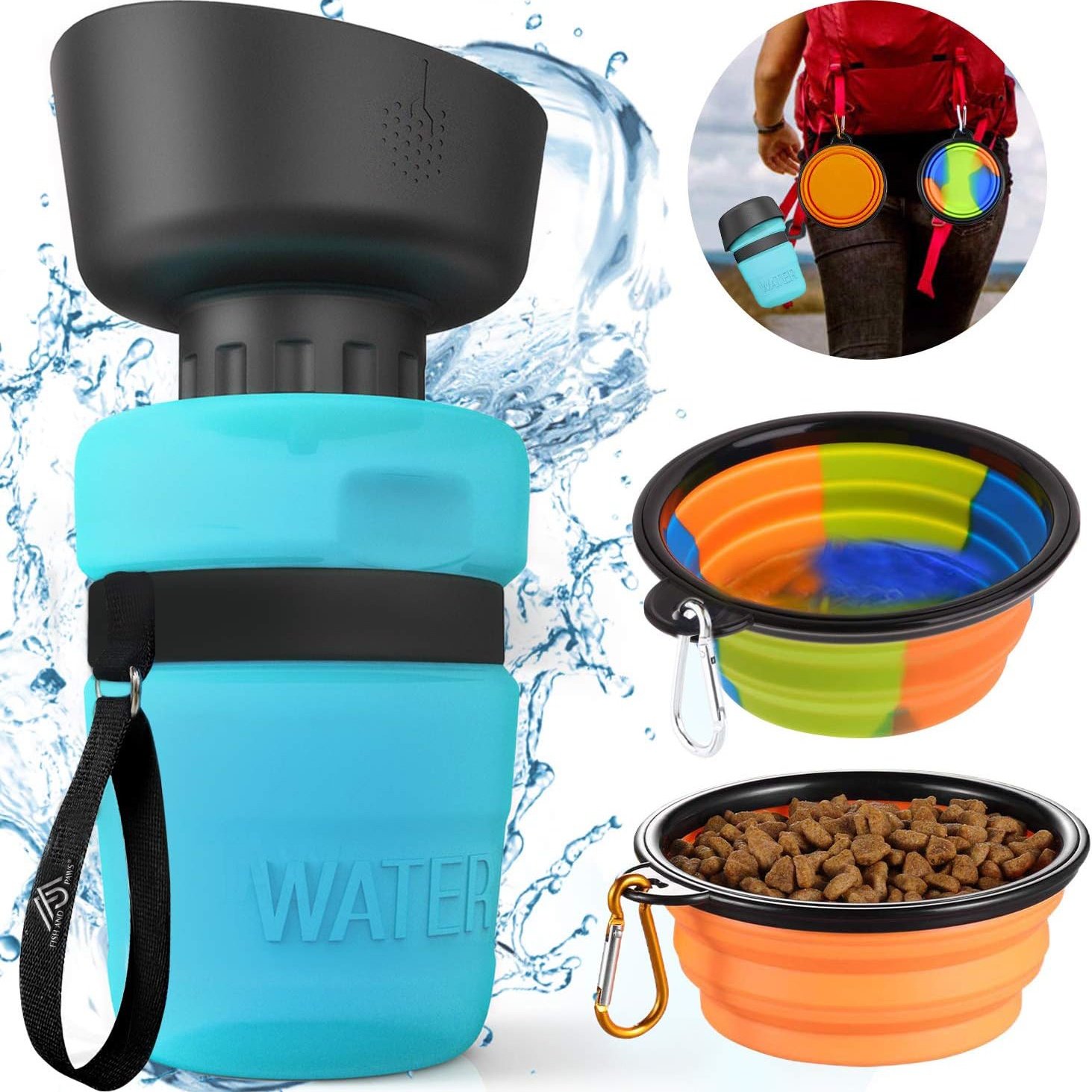 Transforma experienta calatoriilor cu animalul tau de companie intr-un adevarat confort cu ajutorul sticlei portabile de apa si a celor 2 boluri pliabile pentru mancare/apa. Special conceputa pentru plimbarile, drumetiile sau aventurile tale impreuna cu cainii sau pisicile, aceasta sticla inovativa imbina utilitatea unui bol cu portabilitatea unei sticle de apa.In plus, te bucuri de doua boluri extra, fabricate din silicon premium, care te vor ajuta sa iti hranesti animalul de companie in orice moment al zilei, indiferent unde te afli.Folosirea este un joc de copil:Capacul pliabil se transforma intr-un instant intr-un bol pentru apa, eliminand nevoia unui recipient separat. Cu o simpla apasare a sticlei, apa se va deversa in bol, fiind extrem de practic pentru cainii sau pisicile de talie mica sau medie.Cu o capacitate impresionanta de 18 oz, sticla noastra garanteaza hidratarea optima a patrupedului tau in orice conditii, fie ca te afli in calatorie, drumetie sau alte activitati in aer liber. Usor de curatat si de depozitat, acestea sunt companionul ideal pentru plimbarile zilnice.Beneficiezi inclusiv de doua carabiniere multifunctionale, folosite de profesionisti in camping si drumetii. Poti atasa chei, alte sticle de apa sau echipament de camping, insa nu sunt recomandate pentru alpinism!Siguranta este esentiala, asa ca am prevazut sticla cu un capac rotativ care previne contaminarea apei ramase in interior. Garnitura de silicon etans asigura faptul ca nu exista scurgeri de apa, protejandu-ti echipamentul de calatorie. Indiferent de cantitatea de apa ramasa, poti strange sticla fara a risipi niciun strop, datorita tubului de apa incorporat.Pentru o experienta de neuitat alaturi de animalul tau de companie, alege aceasta sticla portabila de apa si bolurile pliabile!Sticla usoara de apa pentru cainiMaterial de incredereFabricat din polietilena de inalta densitate, material de siguranta alimentara.Garantat sigur si netoxic, ideal pentru animalele de companie.Fara BPA, fara miros, material moale si reciclabil.Componentele sunt usor de detasat si curatat.Indicator de capacitate. (Va permite sa oferiti animalului de companie cantitatea de apa necesara in functie de nevoile sale de hidratare.)Sticla de apa pliabila pentru cainiFARA SCURGERI & FARA IROSIREAm adaugat un dispozitiv de etansare la capacul sticlei pentru a preveni scurgerile de apa. Oferiti-le cu incredere animalelor de companie apa necesara, fara a va face griji ca rucsacul de calatorie se va uda.Nu se iroseste niciun strop de apa. Sticla poate fi stransa fara a risipi apa, chiar si atunci cand este doar o cantitate mica de apa in ea. Acest lucru se datoreaza faptului ca dispune de un tub de apa incorporat.Sfaturi: Asigurati-va ca apa pe care o introduceti in sticla este curata si potabila pentru a proteja sanatatea animalului dumneavoastra de companie.Portabil & Comod pentru drumetiiSticla de apa pentru caini cu bol integrat, ideala pentru plimbariBoluri pliabile pentru animale de companieEchipament de sport ideal pentru cainiRelaxeaza-te alaturi de animalul de companie in orice activitate sportiva.Cu aceasta sticla, ai la dispozitie apa si gustari pentru cainele tau oricand.Bucura-te de o calatorie alaturi de animalul tau de companieCand sunteti in drum, accesul la apa proaspata si mancare devine foarte convenabil pentru animalul tau de companie.Evita sa hranesti animalele de companie cu apa sarataSticla de apa si bolurile pentru mancare si apa sunt usoare si convenabile de transportat, oferindu-ti confortul ideal in timpul drumetiilor.Cu sticla de apa si bolurile pentru mancare si apa usoare, poti sa te bucuri de o zi minunata de drumetii alaturi de cainii tai.