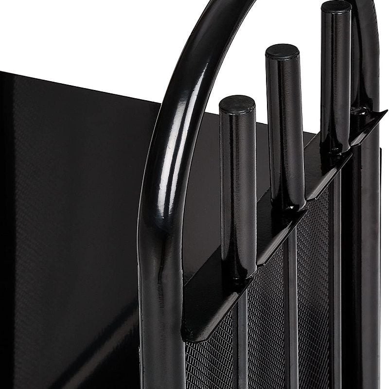 Suport depozitare lemne, 3 accesorii metalice, roti transport, 83x35x30 cm Suportul pentru depozitat lemne este foarte practic pentru semineu, cu ajutorul acestuia vei avea mereu la indemana lemnele pentru foc fara a fi nevoie sa te deplasezi in afara casei de cate ori este nevoie. Suportul este prevazut cu 2 picioare de sustinere si 2 roti care faciliteaza transportarea si pozitionarea acestuia, in plus fiind incluse 3 accesorii pentru intretinerea focului si curatenie: matura, lopata si carlig. Acesta este confectionat din otel fiind rezistent la intemperii si la scanteile care sar accidental. Specificatii: - suport pentru depozitarea lemnelor; - 3 accesorii incluse: matura, lopata si carlig; - prevazut cu 2 roti transport; - accesoriile au manere din otel; - potrivit atat pentru interior cat si exterior; - rezistent la intemperii; - material otel; - dimensiuni 83x35x30 cm; - culoare negru. Atentie! Lemnele nu sunt incluse, acestea reprezinta doar o sugestie de functionalitate a produsului!