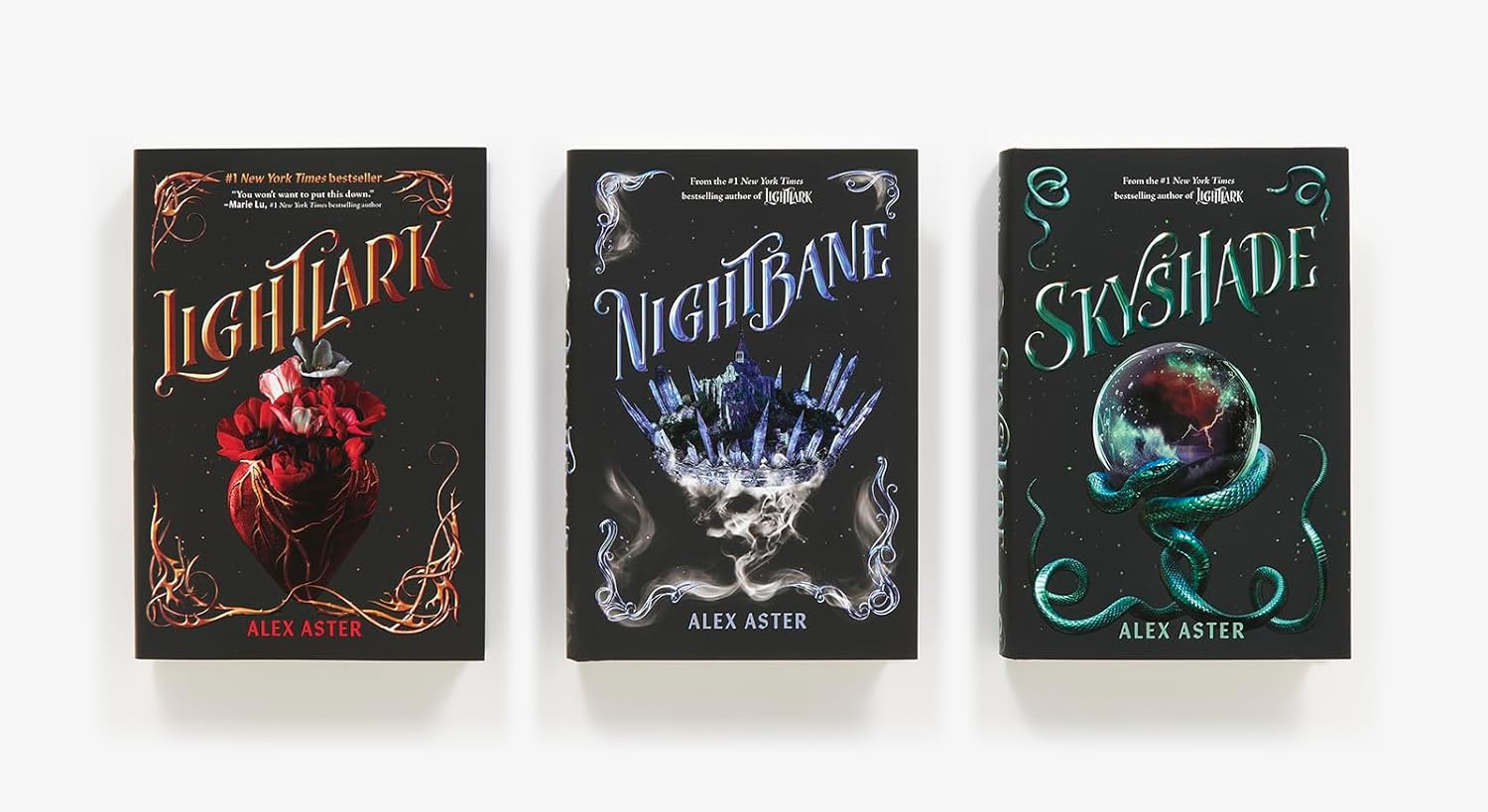 Experience the pulse-pounding #1 New York Times bestselling YA romantasy series The Lightlark Saga in one gorgeous box set with a collectible bonus poster!Follow Isla Crown from her Centennial victory to her eventual crowning as ruler of three realms as she fights to restore her decaying kingdom to glory . . . all while striving to conquer the most harrowing opponent of all: her heart. Spilling tears—and blood—along the way, Isla must prove herself against all odds and fight to change her destiny. But with dueling fates and an ever-approaching prophecy, will she save the world . . . or end it?This collectible box set includes the first three books from The Lightlark Saga in addition to a luxe, full-color poster featuring Isla and her two love interests.This box set includes hardcover editions of Lightlark, Nightbane, and Skyshade.